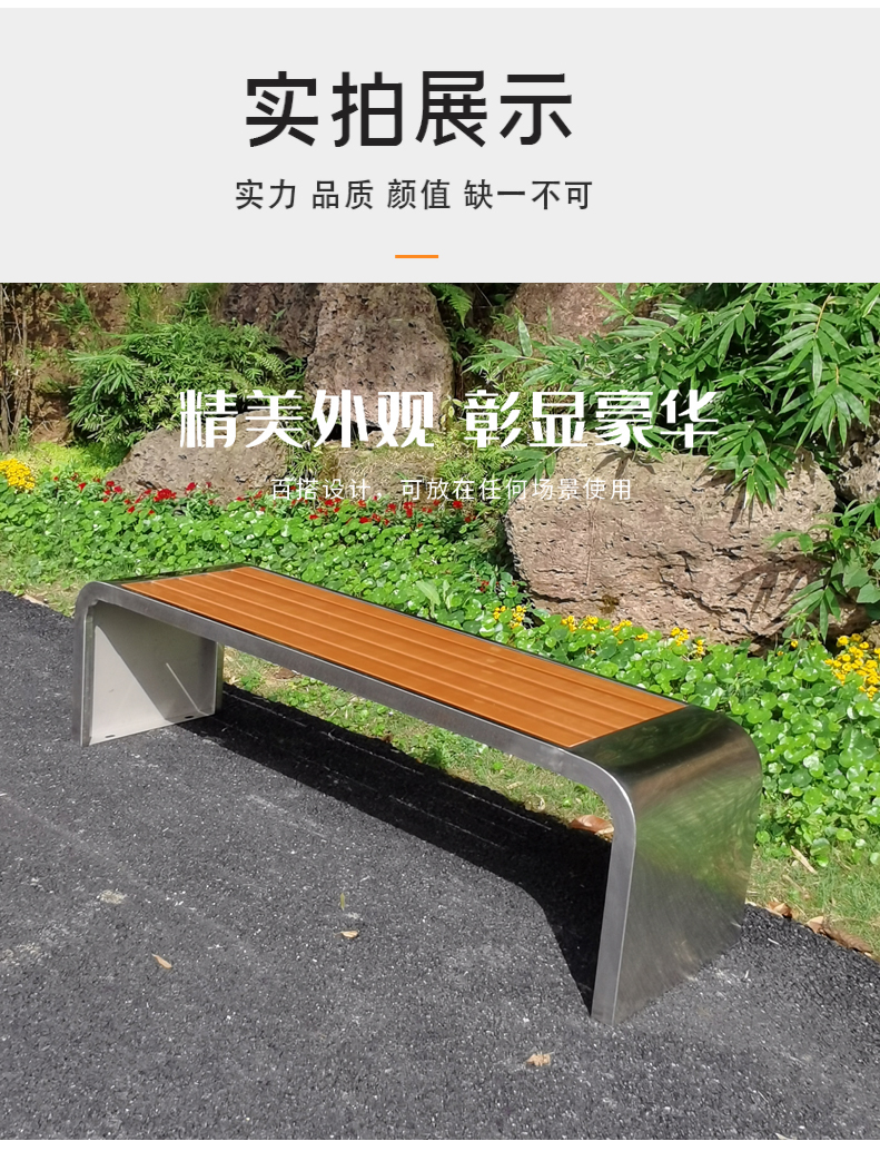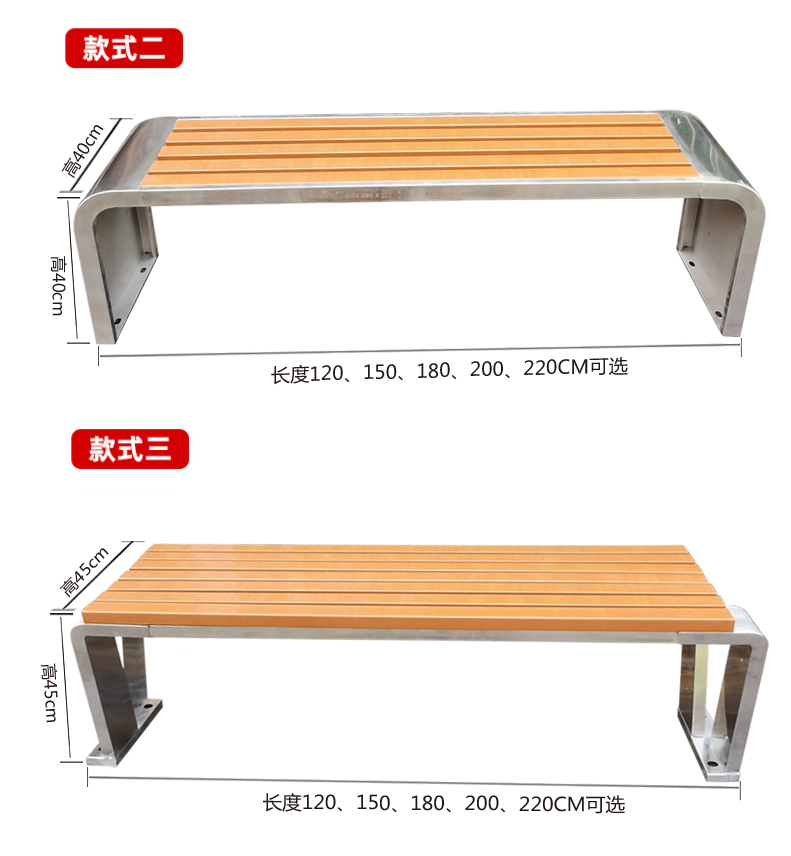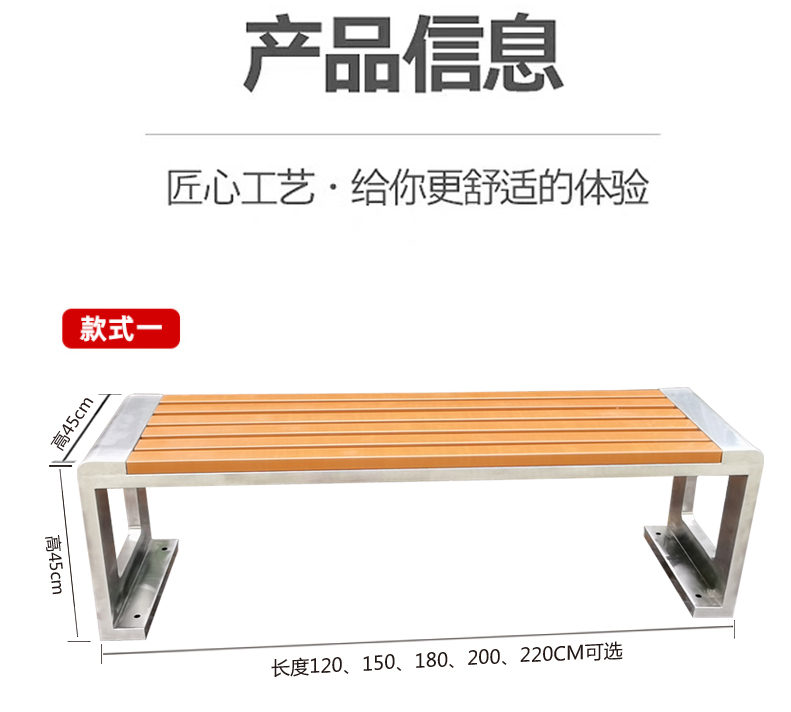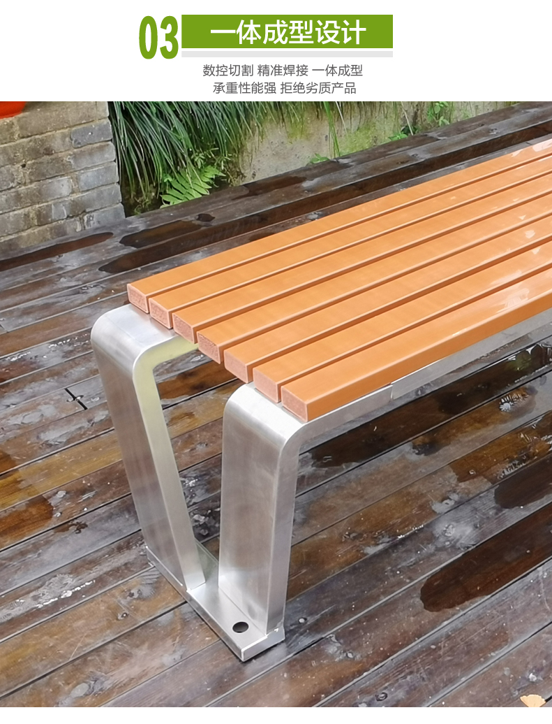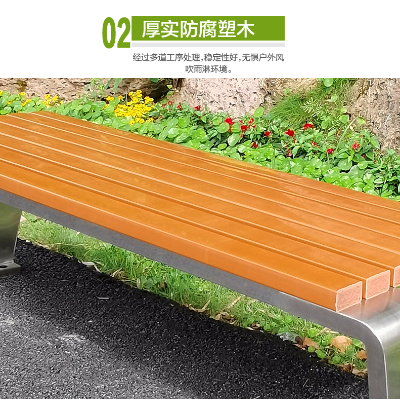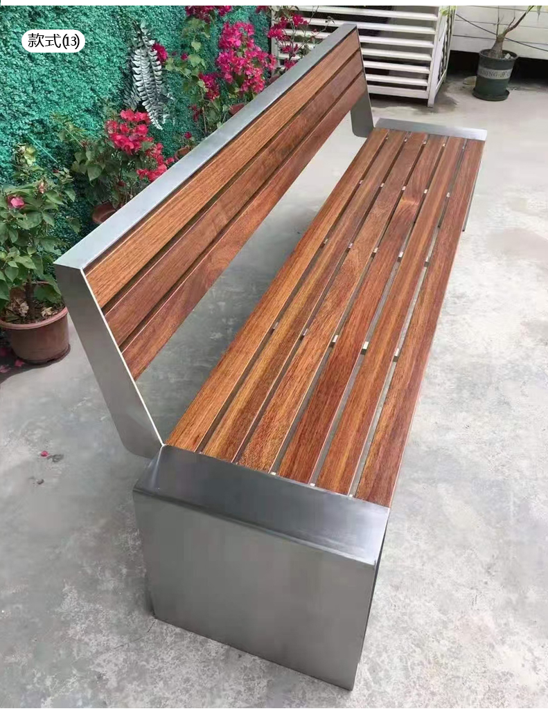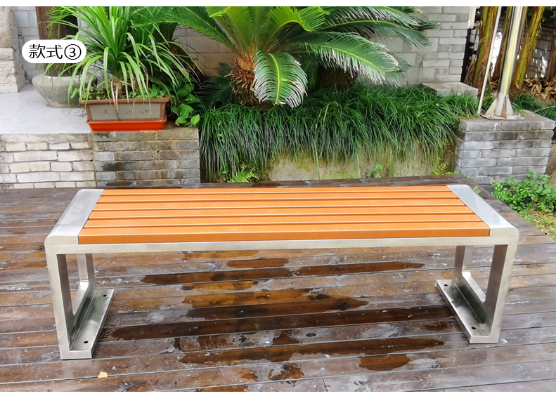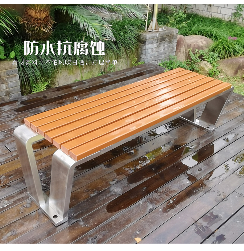 Ghế công viên bằng thép không gỉ Băng ghế ngoài trời chống ăn mòn gỗ ngoài trời Ghế vuông sân vườn Ghế nhựa gỗ không có tựa lưng