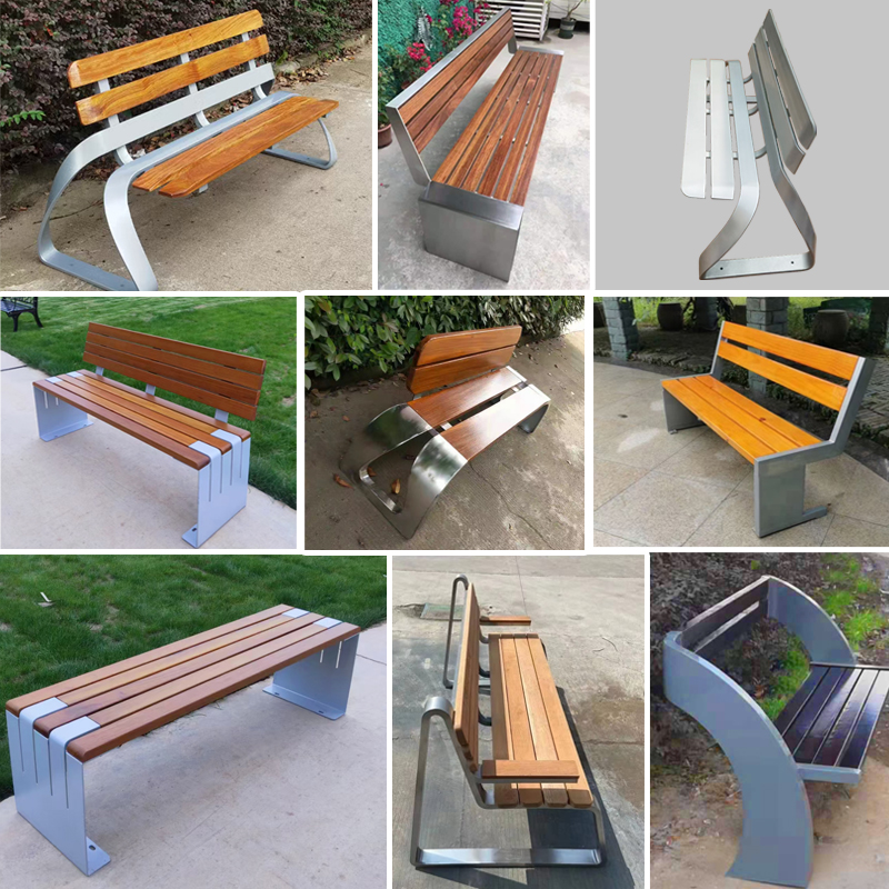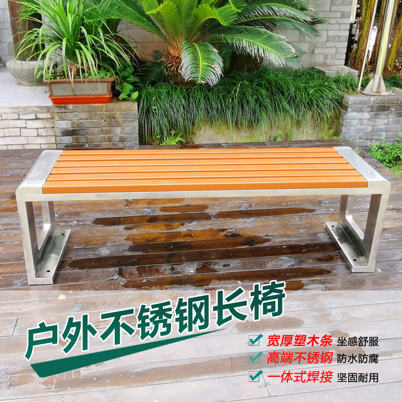 Ghế công viên bằng thép không gỉ Băng ghế ngoài trời chống ăn mòn gỗ ngoài trời Ghế vuông sân vườn Ghế nhựa gỗ không có tựa lưng