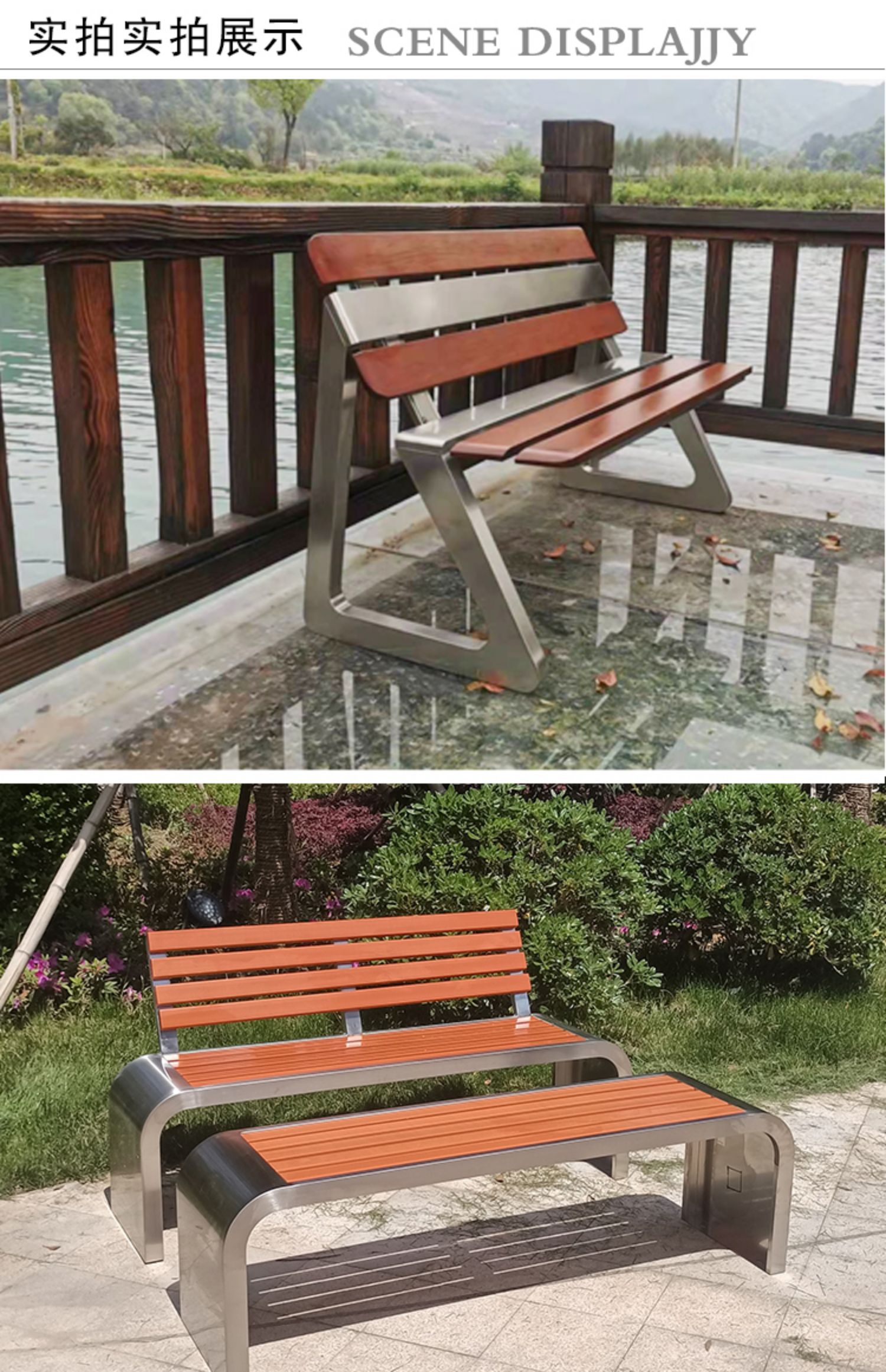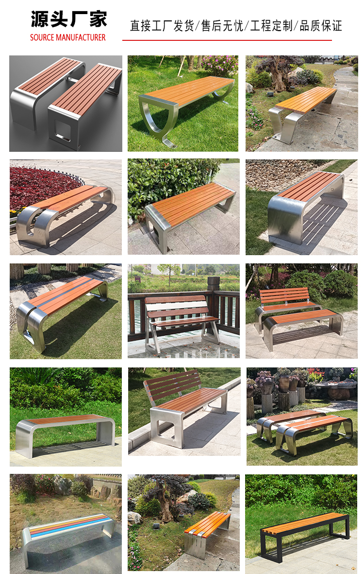 Ghế công viên bằng thép không gỉ ghế ngoài trời băng ghế nhựa gỗ bảo quản dải gỗ giải trí ghế sân trong hình vuông cộng đồng phần còn lại ghế tùy chỉnh