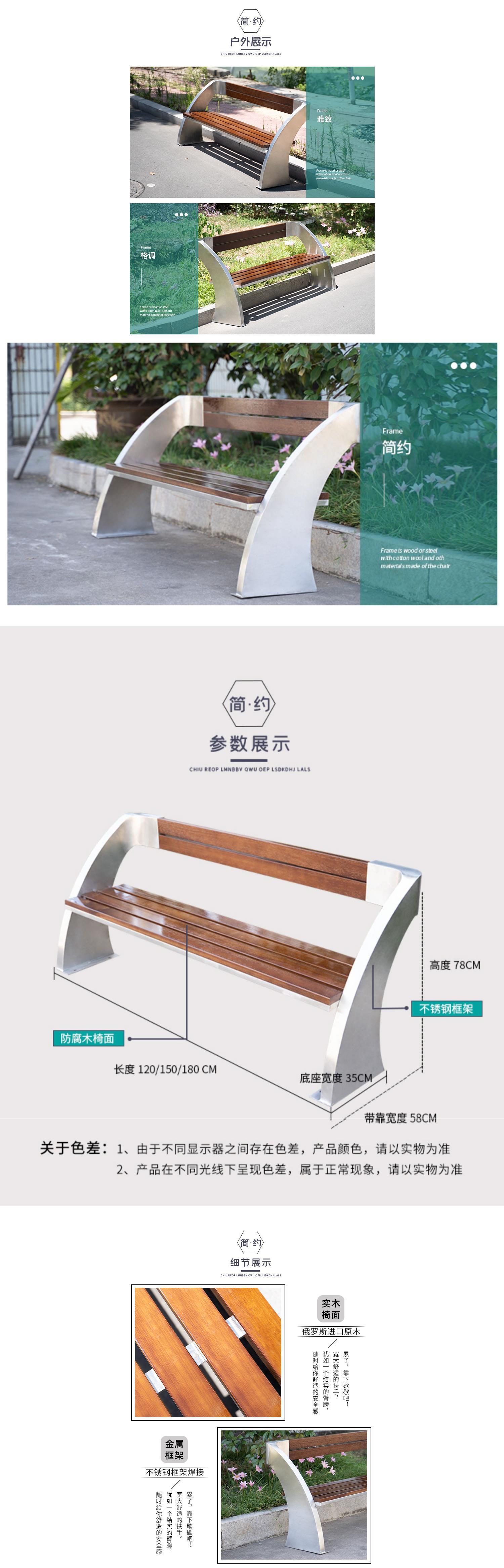 Ghế công viên bằng thép không gỉ ngoài trời vuông có tựa lưng băng ghế giải trí vườn ngoài trời khu danh lam thắng cảnh băng ghế bất động sản