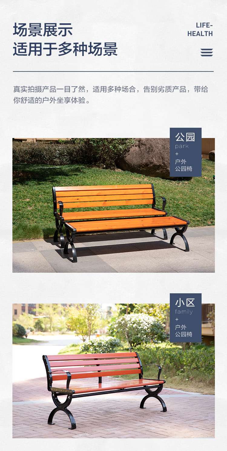 Ghế công viên dải gỗ băng ghế ngoài trời chống ăn mòn rắn gỗ nhựa dải gỗ sân trong ghế thư giãn ngoài trời hàng ghế phụ kiện tùy chỉnh
