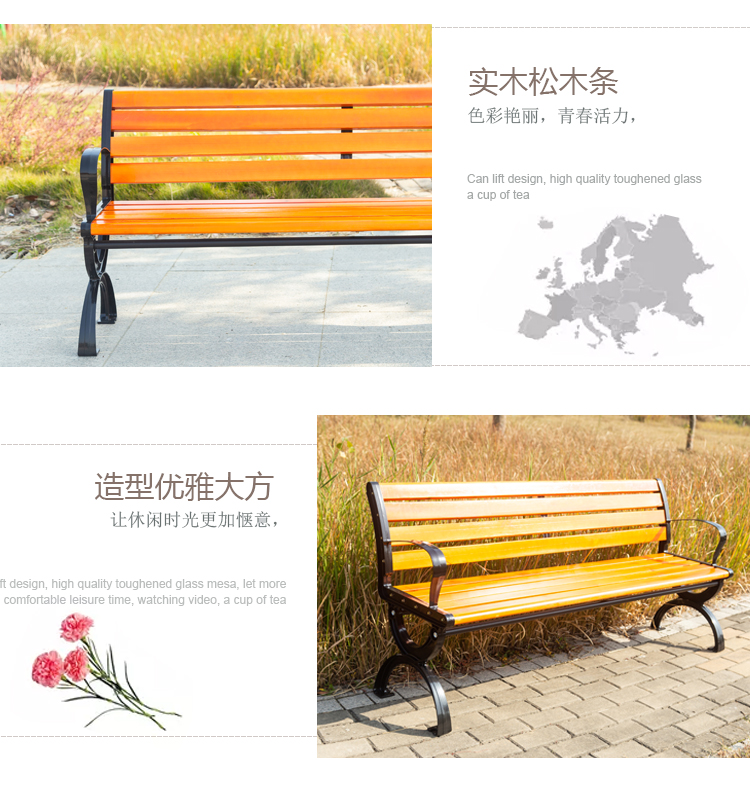Ghế công viên, ghế dài ngoài trời, ghế gỗ chống ăn mòn, quầy bar gỗ nhựa, sân vườn cộng đồng vuông ngoài trời, quầy bar gỗ nhập khẩu