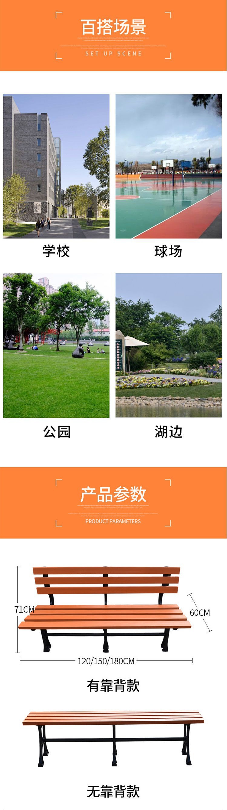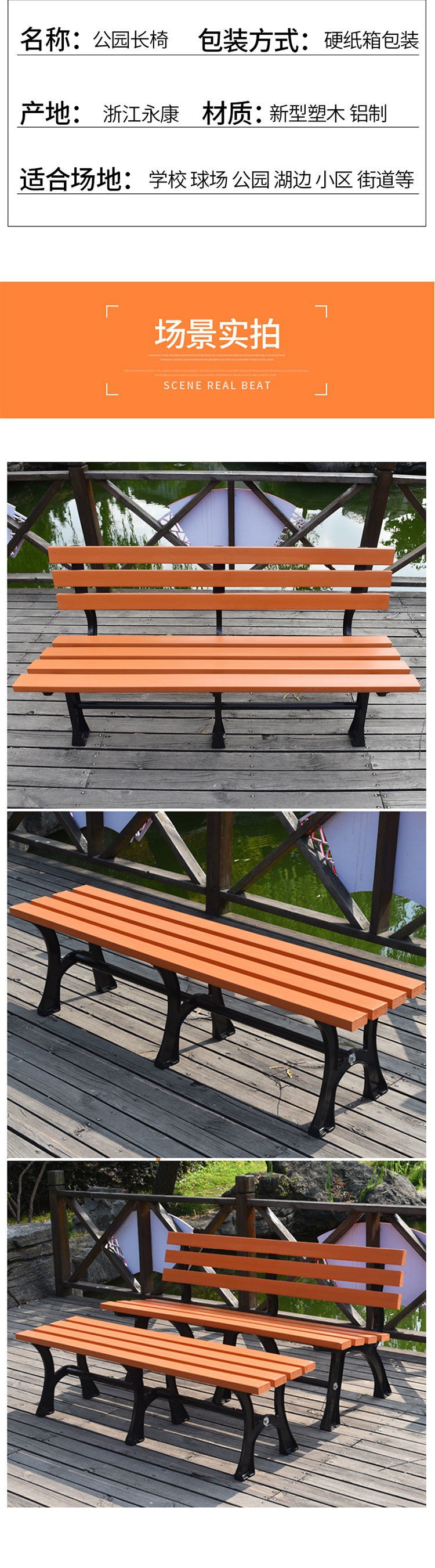 Ghế công viên ghế dài ngoài trời gỗ đặc chống ăn mòn ghế sân vườn gỗ nhựa có hoặc không có tựa lưng ghế băng vuông nhôm đúc
