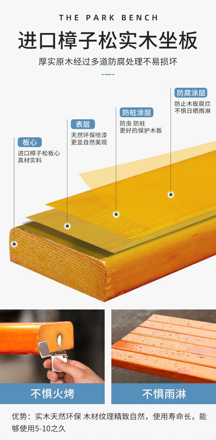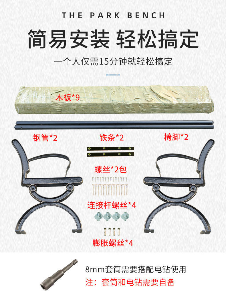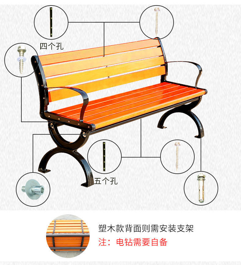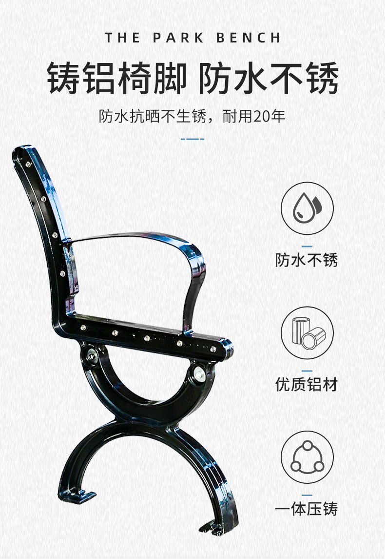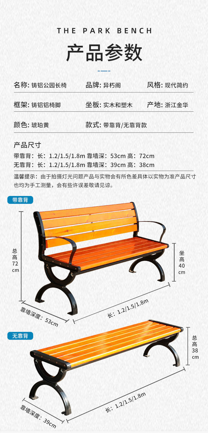 Ghế công viên ghế dài ngoài trời gỗ đặc ghế sân vườn gỗ nhựa có tựa lưng hoặc không tựa ghế vuông dài nhôm đúc