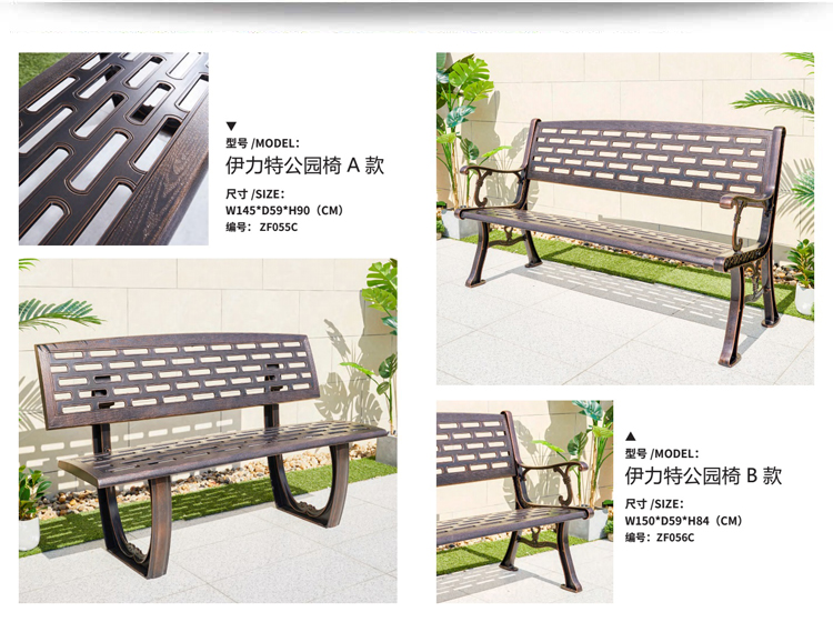 Ghế công viên Ghế dài ngoài trời Quảng trường cộng đồng Sân trong Giải trí Ghế sofa ngoài trời Đôi ghế dài bằng nhôm đúc Ghế ban công