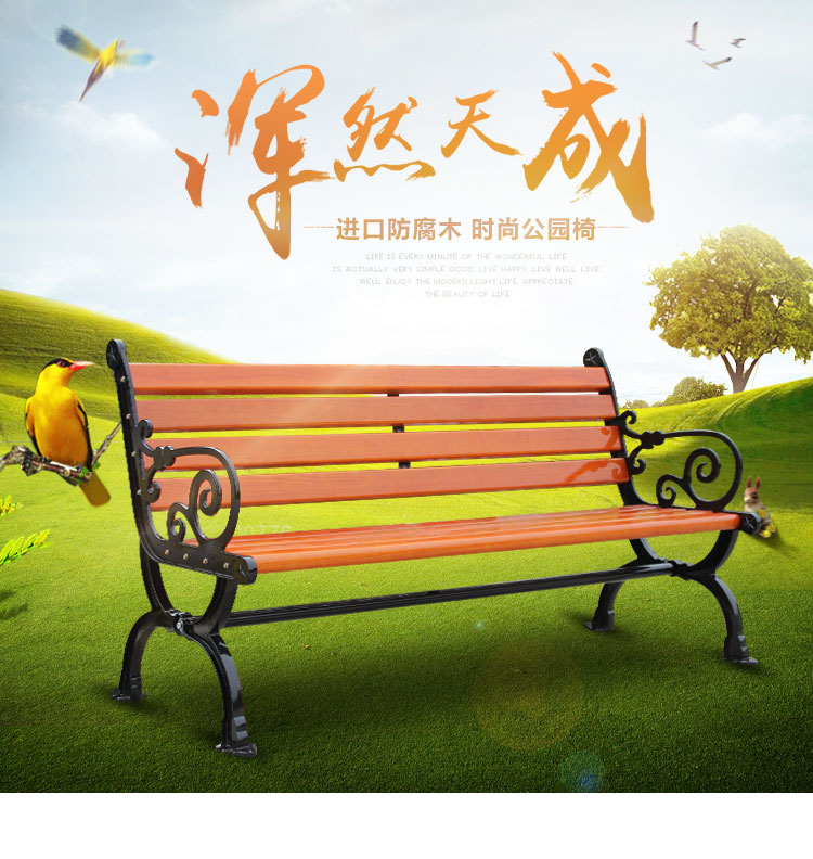 Ghế công viên Ghế dài ngoài trời Vườn giải trí Ghế vuông Ghế gỗ rắn lưng Ghế gang nhôm Bảo quản Ghế dài gỗ