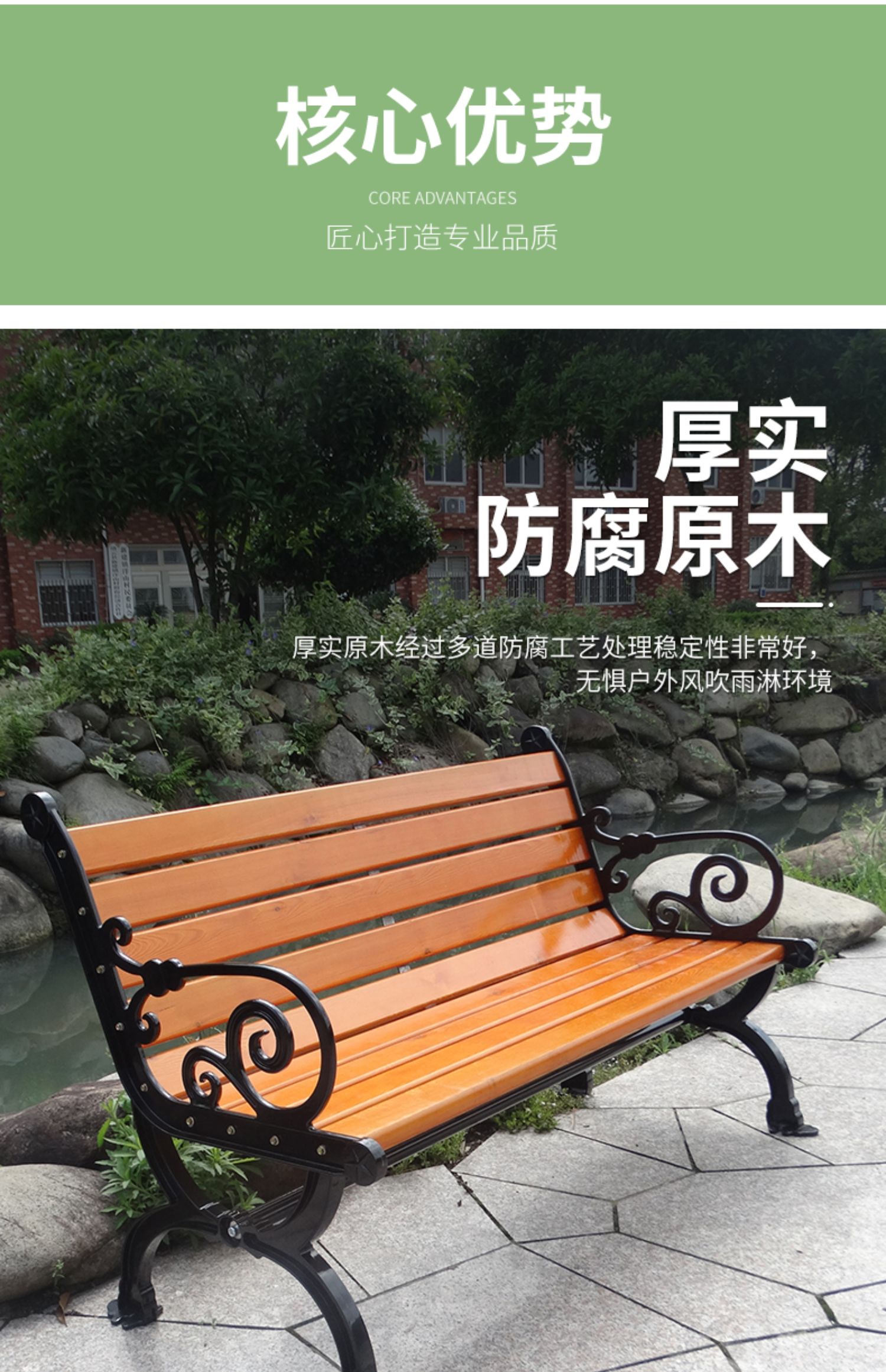 Ghế công viên Ghế ngoài trời chống ăn mòn lưng gỗ chống ăn mòn sân cộng đồng biệt thự vuông còn lại ghế công cộng ghế ba người