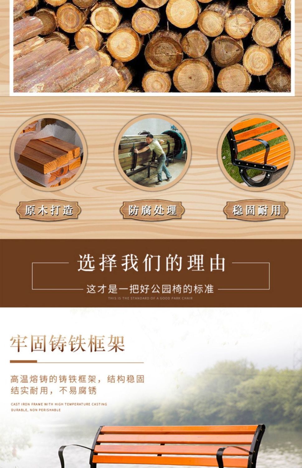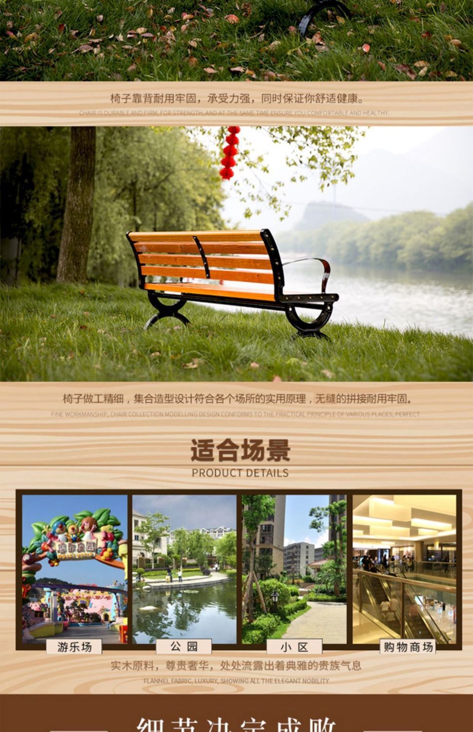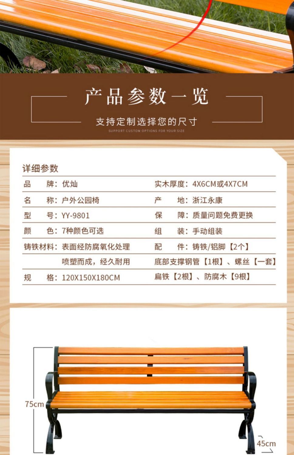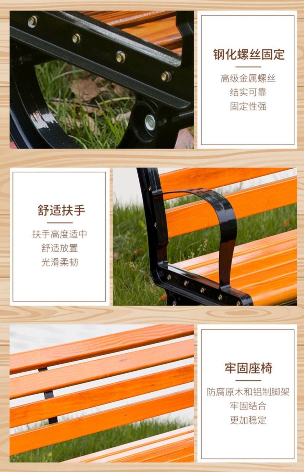Ghế Công Viên Ghế Ngoài Trời Sân Vườn Ghế Vuông Gỗ Chắc Chắn Dài Ghế Nhôm Đúc Ghế Gỗ Chống Ăn Mòn