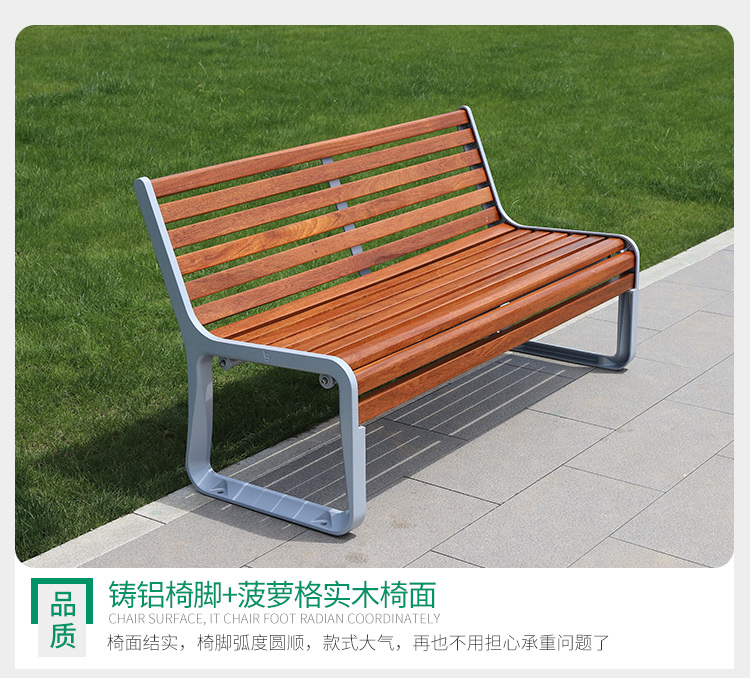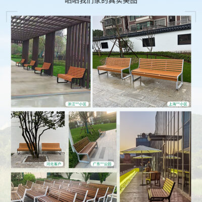 Ghế công viên, ghế ngoài trời, tựa lưng gỗ chống ăn mòn, ghế tựa đôi, ghế thư giãn vuông cộng đồng, ghế phong cảnh