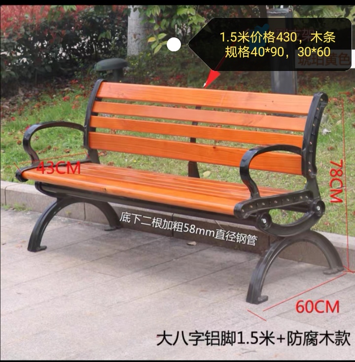 Ghế công viên gỗ chống ăn mòn ghế gỗ băng ghế ngoài trời ghế nhựa gỗ dải ghế cộng đồng ghế nhôm đúc chân ghế gỗ gạo nhựa tùy chỉnh