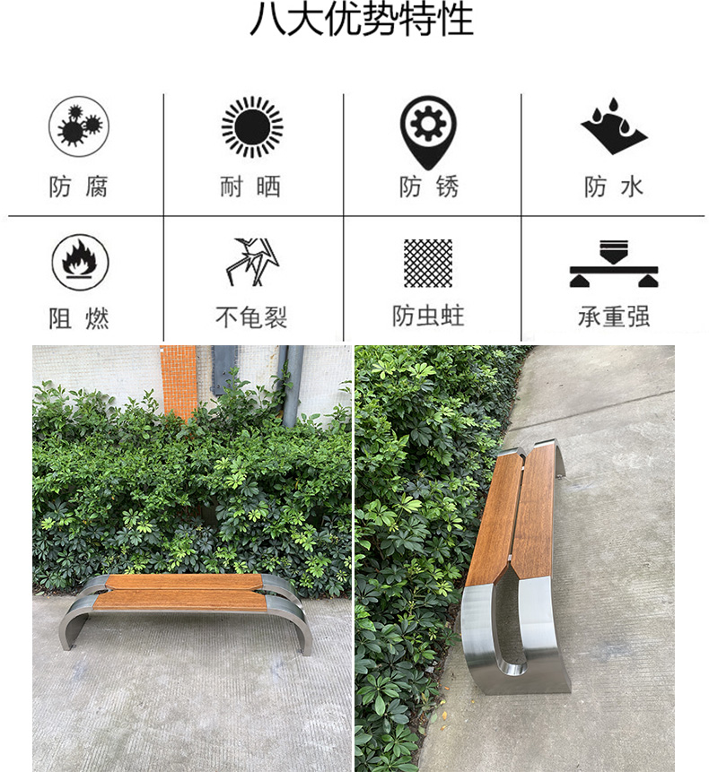 Ghế công viên gỗ rắn ngoài trời Ghế băng thép không gỉ chất bảo quản gỗ băng ghế giải trí mua sắm trung tâm mua sắm phần còn lại công cộng hàng ghế