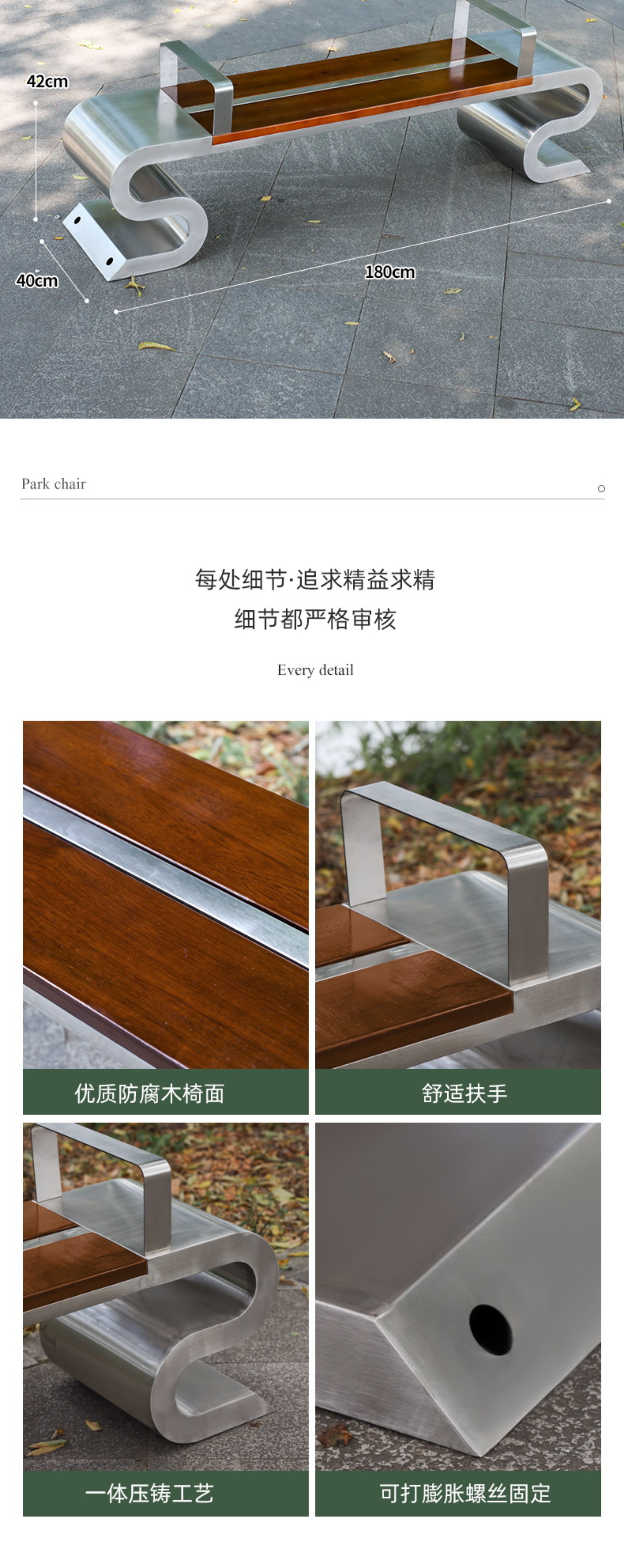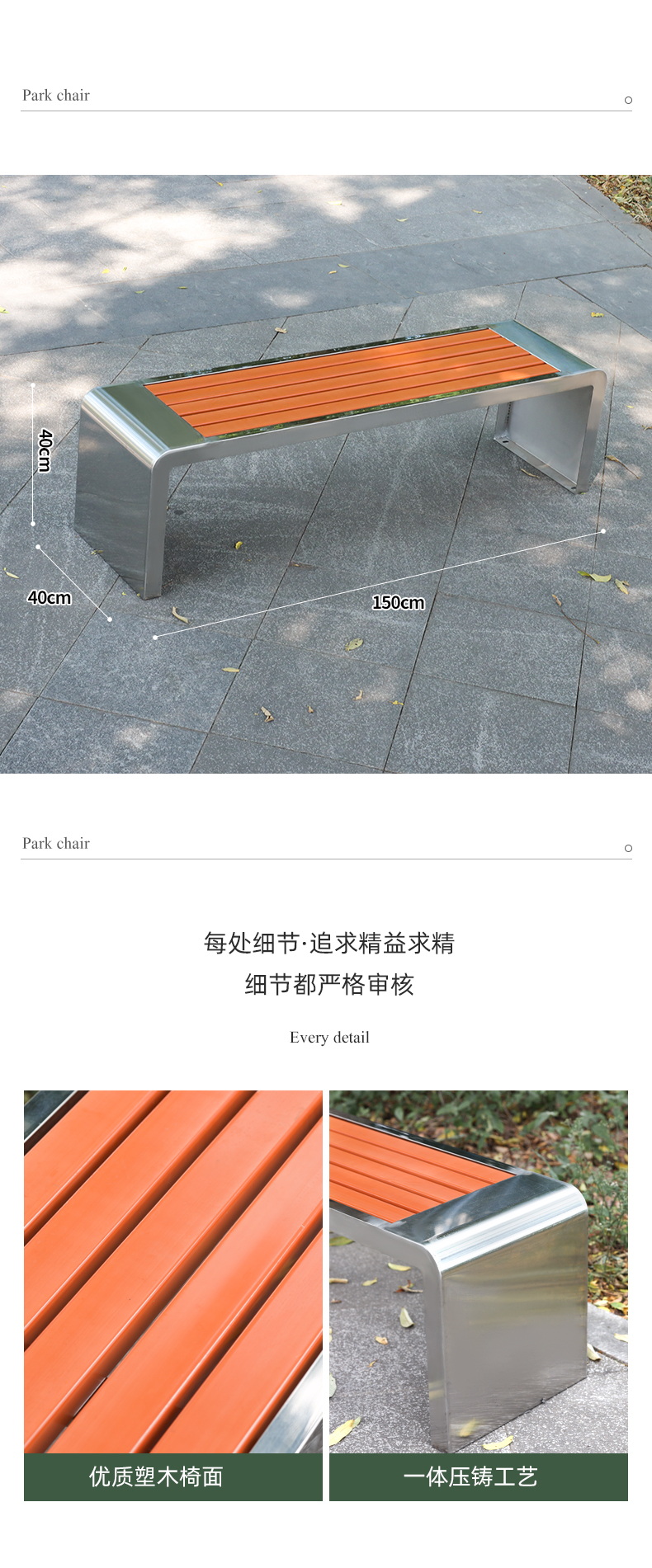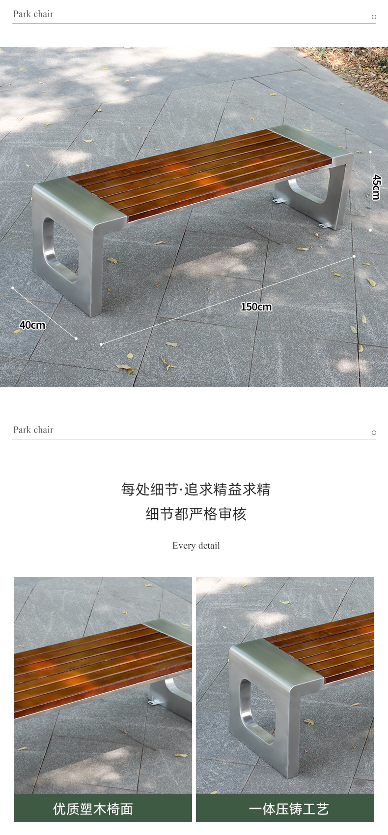 Ghế công viên inox băng ghế ngoài trời Băng ghế inox ngoài trời gỗ chống ăn mòn gỗ nhựa ghế giải trí quảng trường cộng đồng
