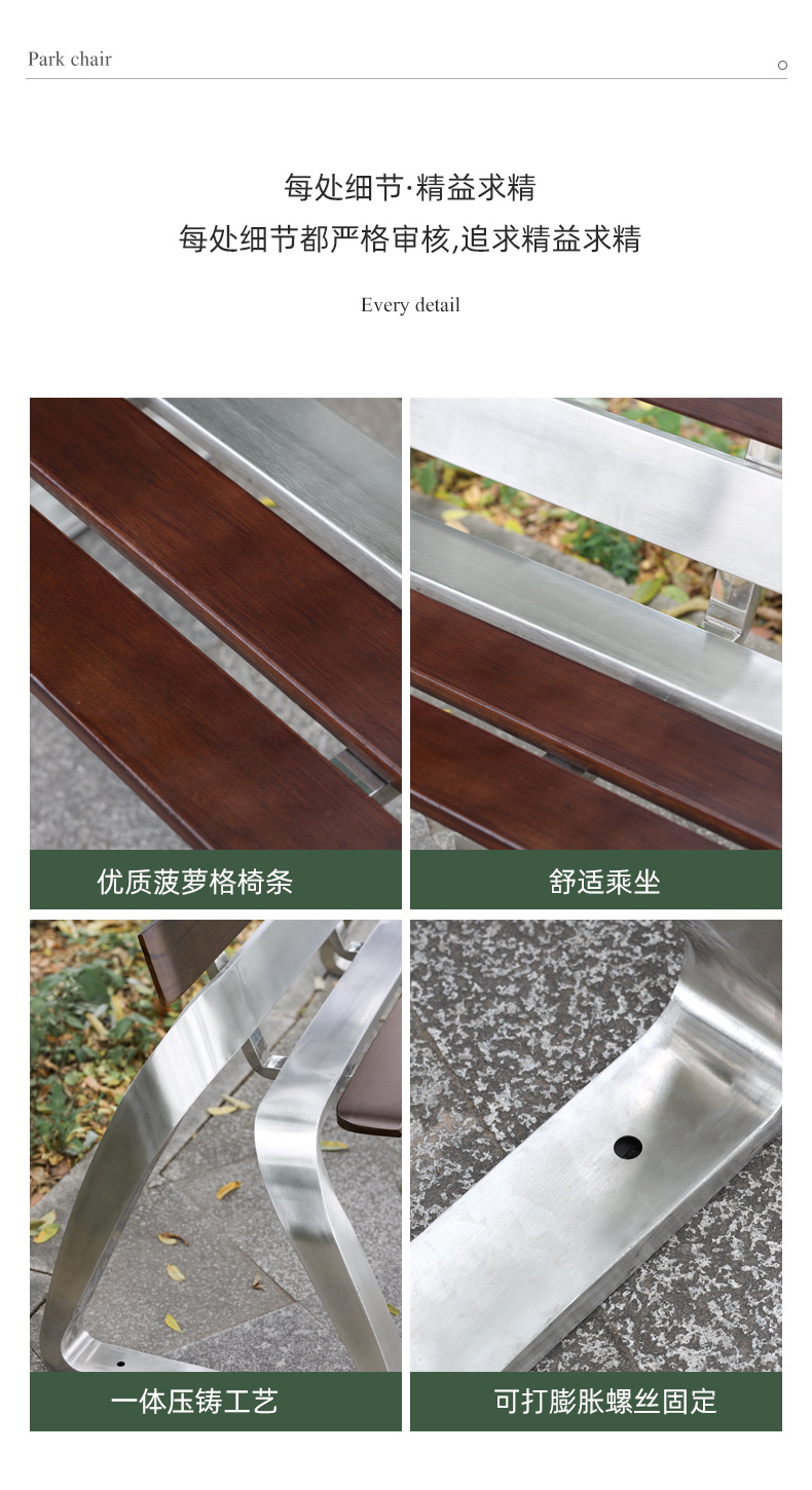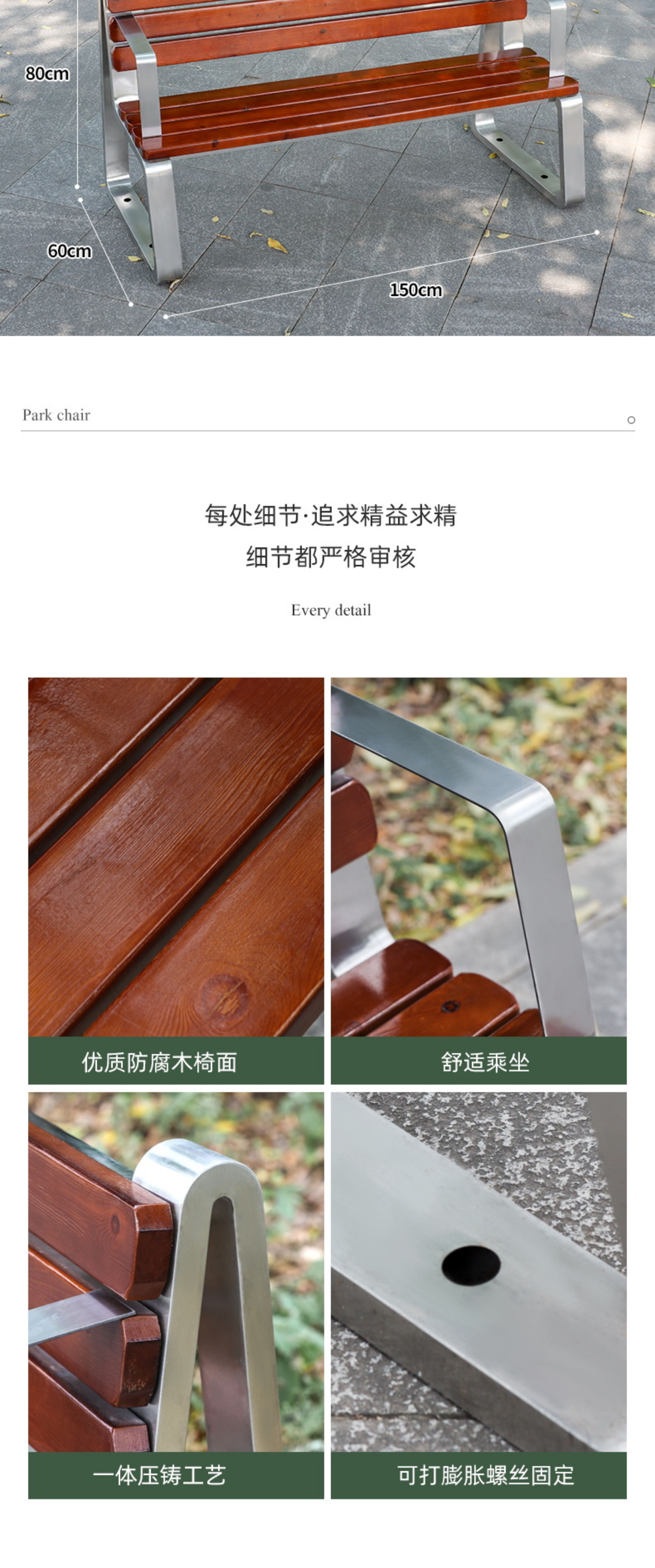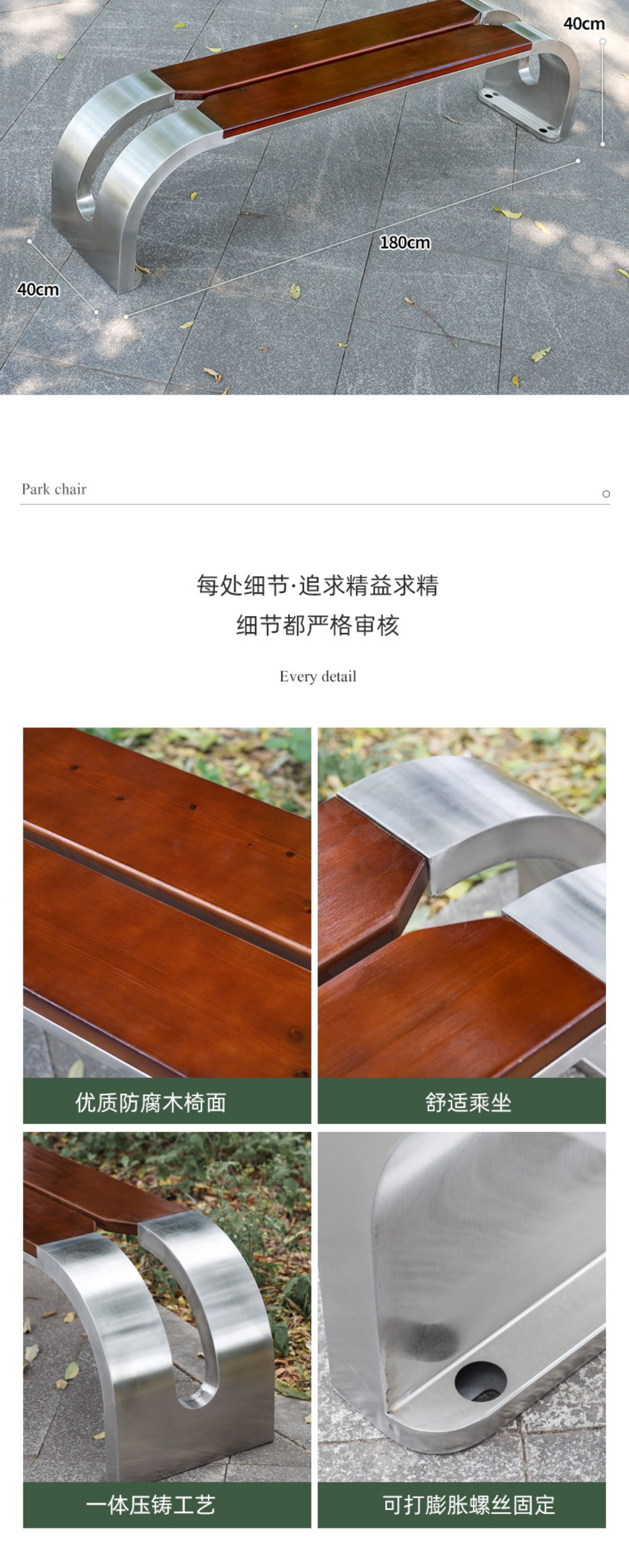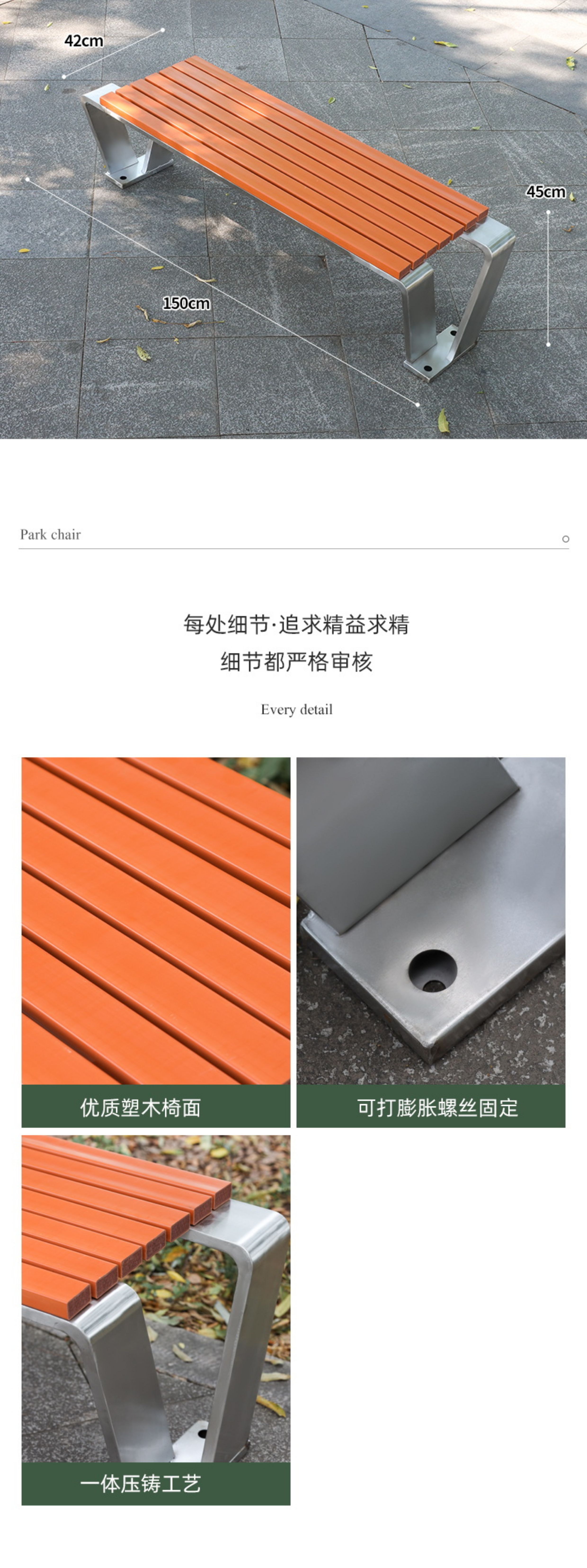 Ghế công viên inox băng ghế ngoài trời Băng ghế inox ngoài trời gỗ chống ăn mòn gỗ nhựa ghế giải trí quảng trường cộng đồng
