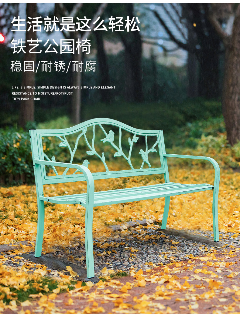 Ghế công viên Mojia Ghế ngoài trời Ghế dài ngoài trời Ghế thư giãn Ghế hàng Ghế nhựa Gỗ rèn sắt lưng Ghế công viên