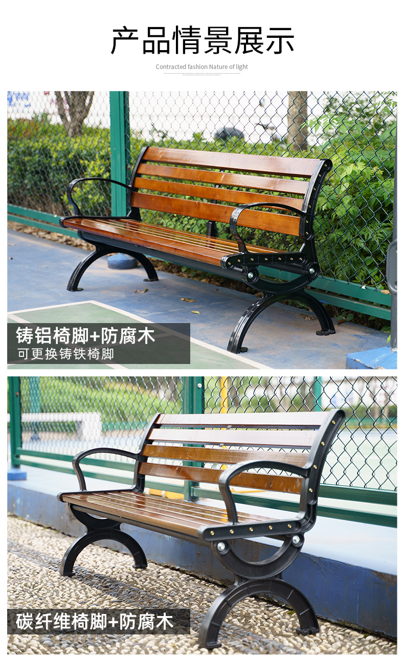Ghế công viên ngoài trời băng ghế dự bị ngoài trời giải trí tựa lưng ghế chống ăn mòn gỗ hợp kim kẽm ghế sân cộng đồng băng ghế dự bị