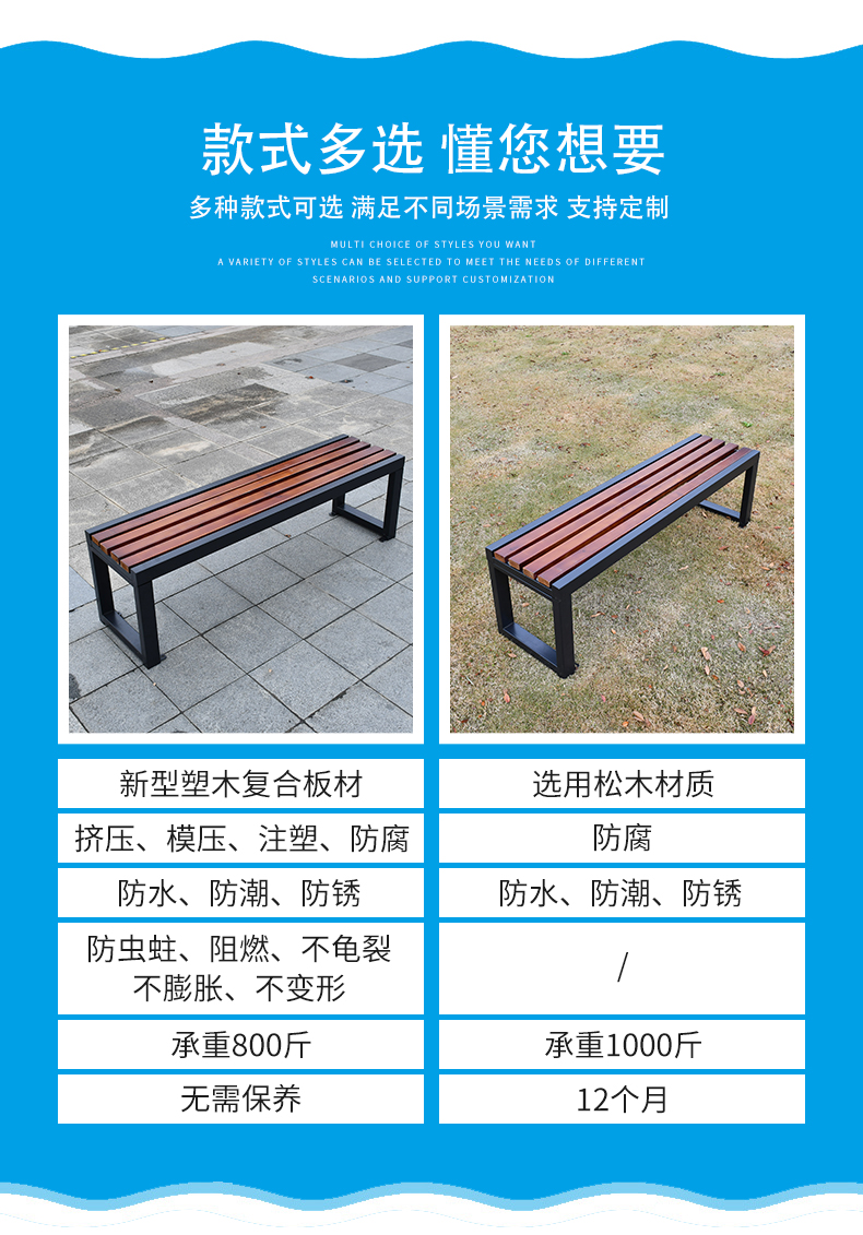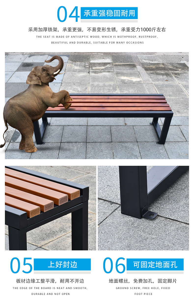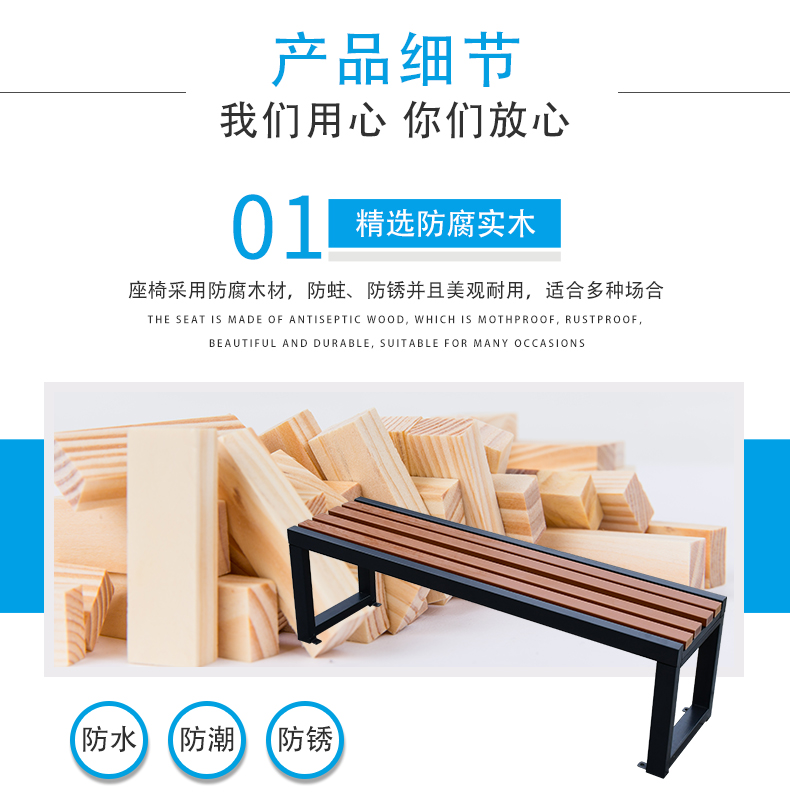 Ghế công viên ngoài trời băng ghế ngoài trời chống ăn mòn băng ghế gỗ rắn vuông sân bóng rổ sân trong giải trí băng ghế nghỉ ngơi