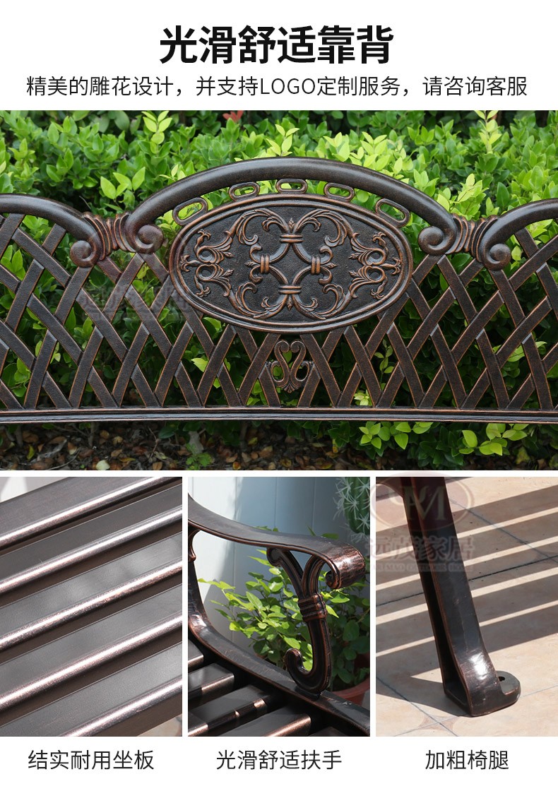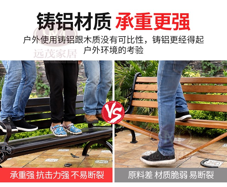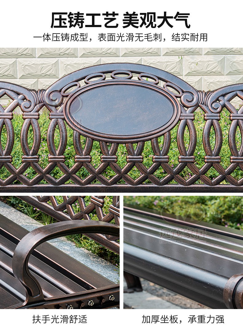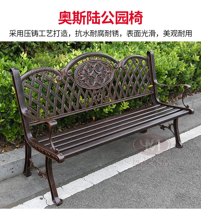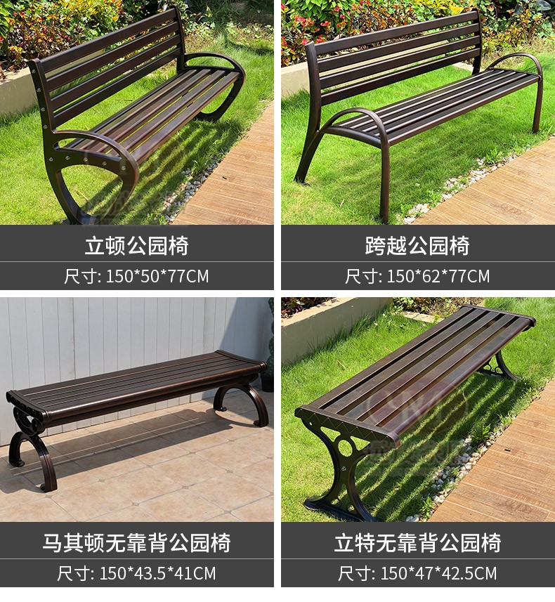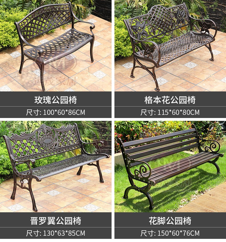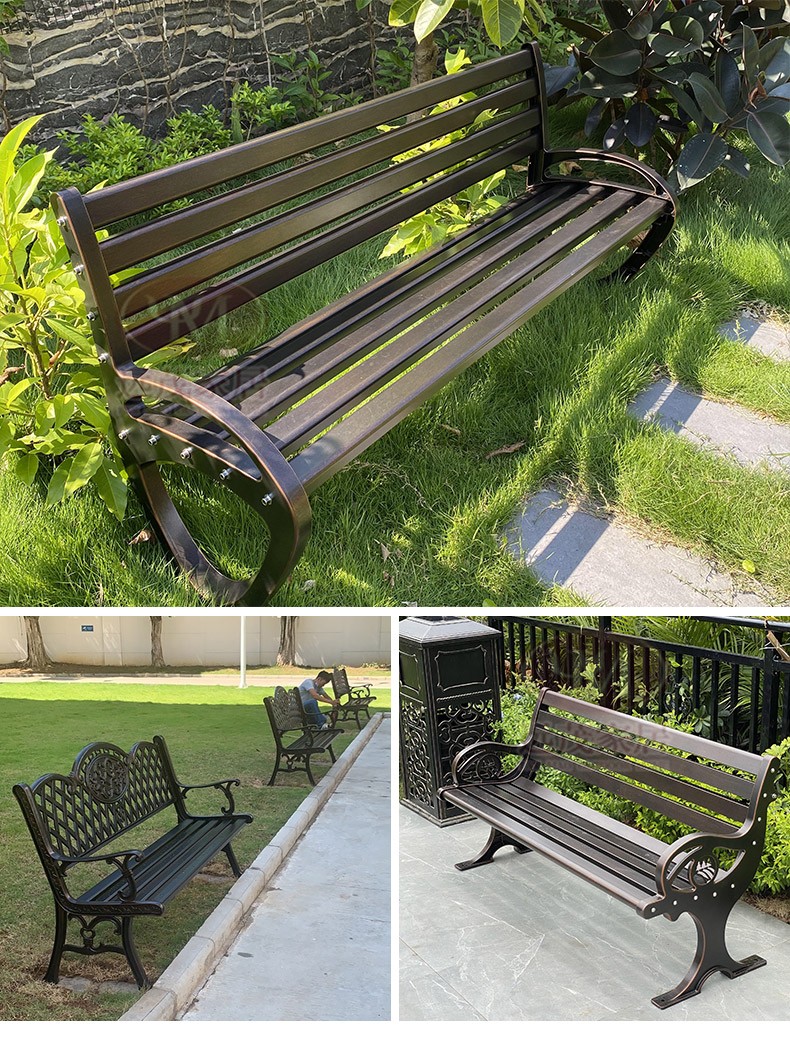 Ghế công viên ngoài trời băng ghế nhôm đúc sân vườn vuông sắt rèn trở lại ghế dài băng ghế thư giãn ngoài trời
