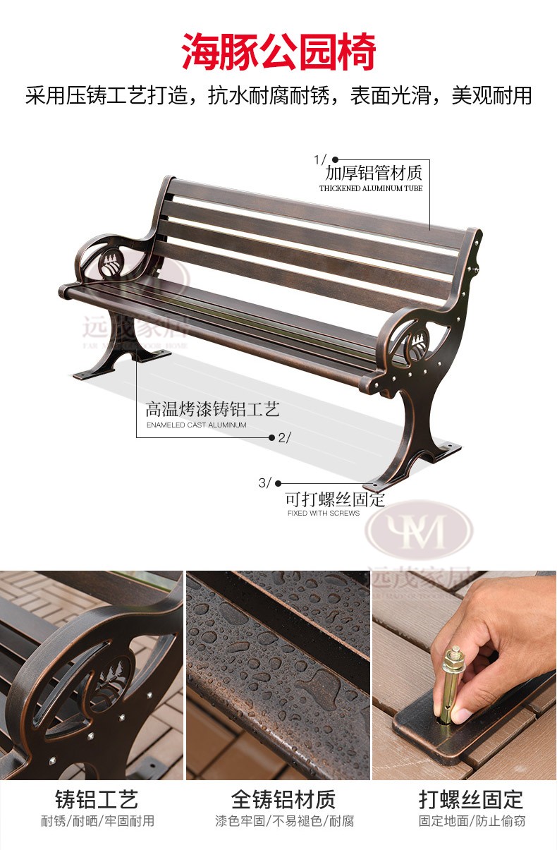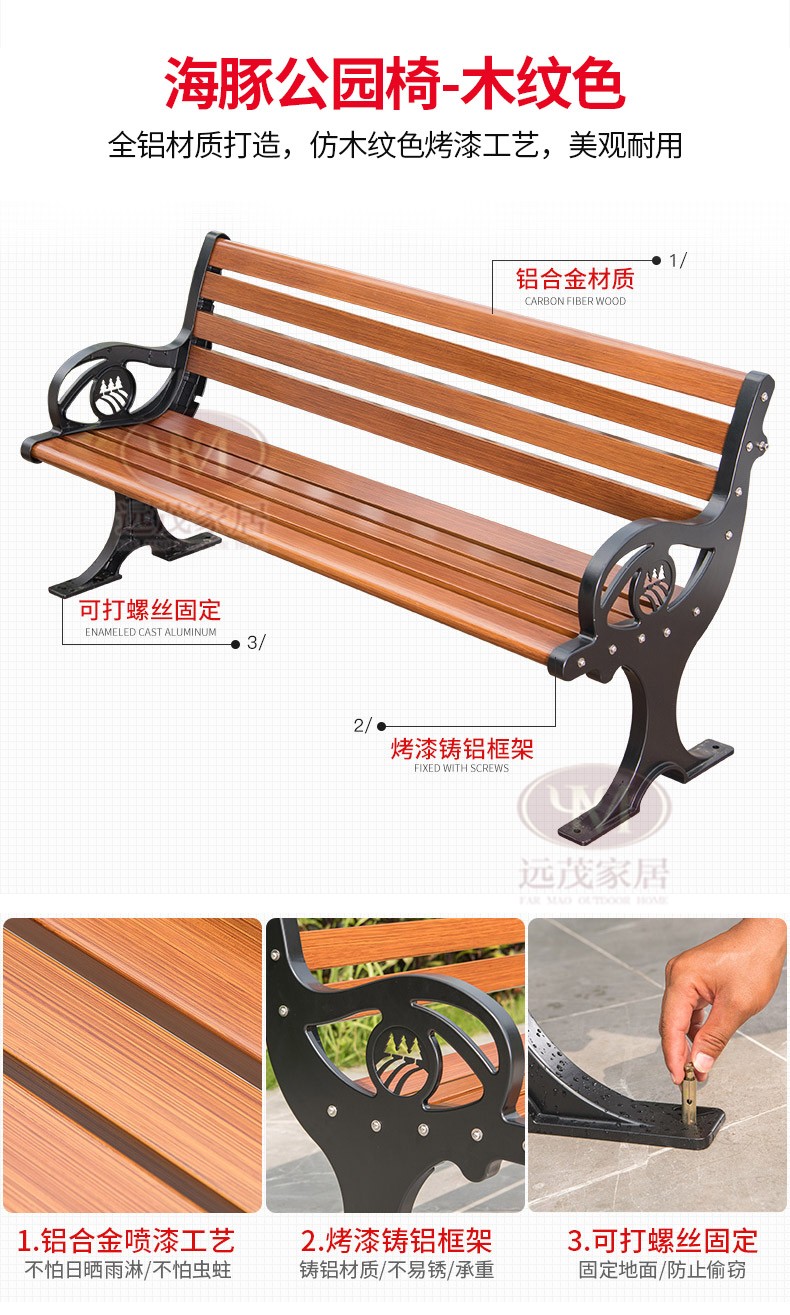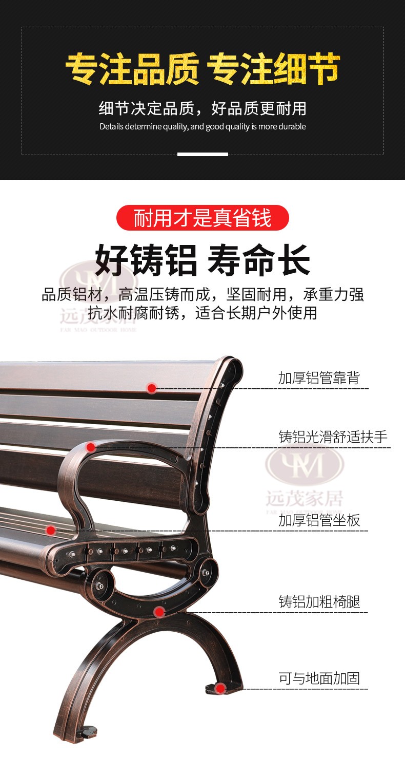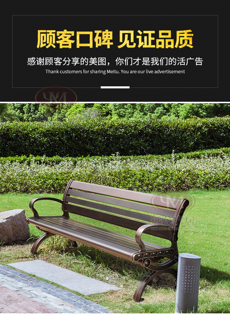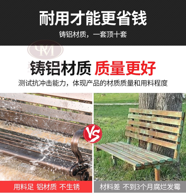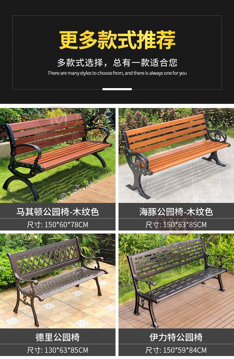 Ghế công viên ngoài trời băng ghế nhôm đúc sân vườn vuông sắt rèn trở lại ghế dài băng ghế thư giãn ngoài trời