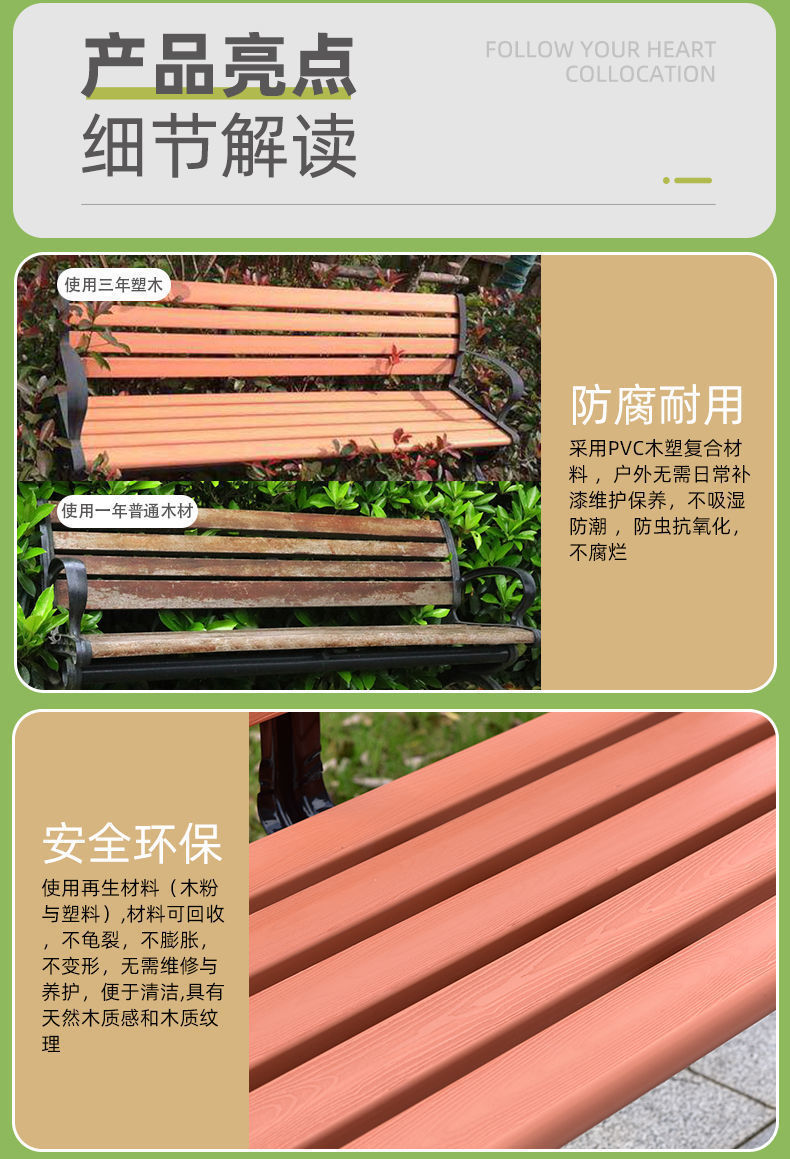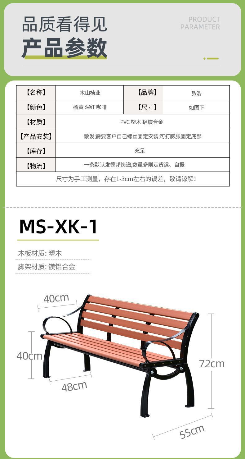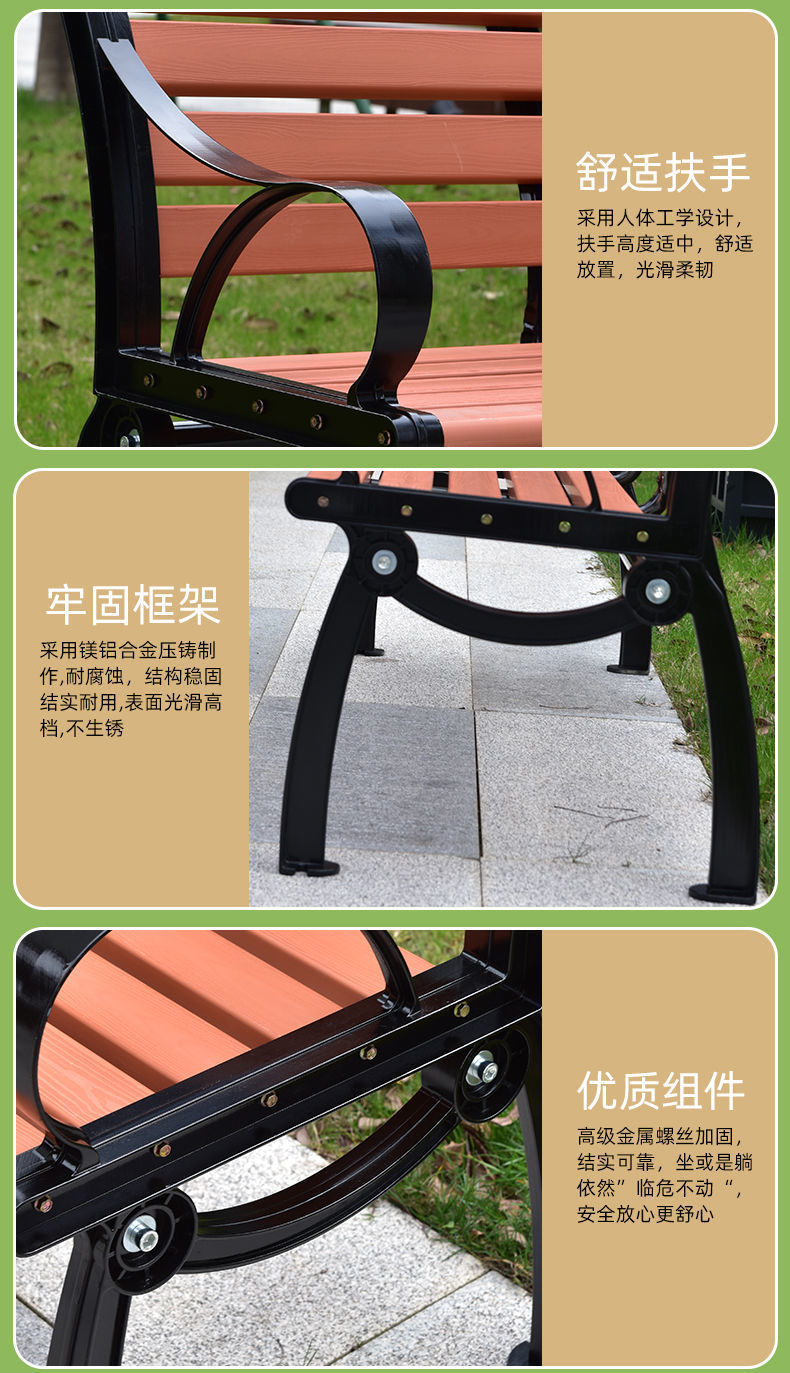 Ghế công viên ngoài trời băng sân vườn ghế sau nhựa chống ăn mòn gỗ ghế thư giãn vuông băng ghế sân vườn ban công đôi