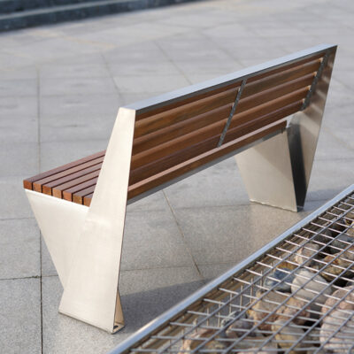Ghế công viên ngoài trời bằng thép không gỉ ghế gỗ chống ăn mòn trạm trung tâm mua sắm trường học vuông ghế chờ giải trí