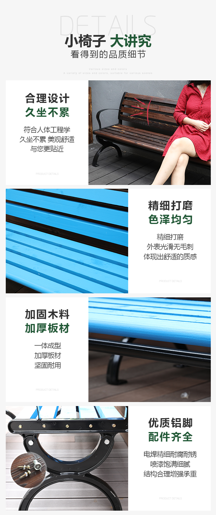 Ghế công viên ngoài trời chống ăn mòn Ghế dài thư giãn tựa lưng ngoài trời Ghế ngoài trời cho ba người