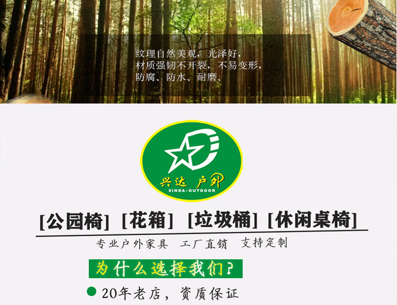 Ghế công viên ngoài trời ghế băng chống ăn mòn gỗ lưng ghế đôi dải dài cộng đồng hình vuông ghế thư giãn ngoài trời băng ghế