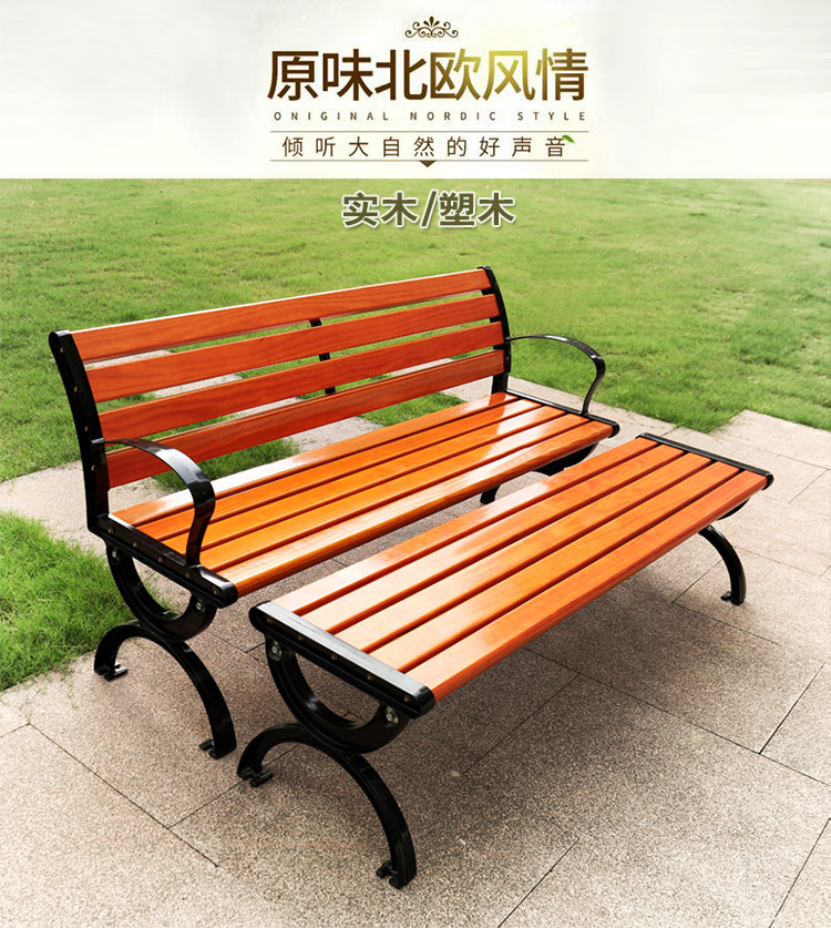 Ghế công viên ngoài trời ghế dài chống ăn mòn gỗ sắt rèn lưng nhôm ghế thư giãn ngoài trời gỗ rắn vuông ghế cộng đồng