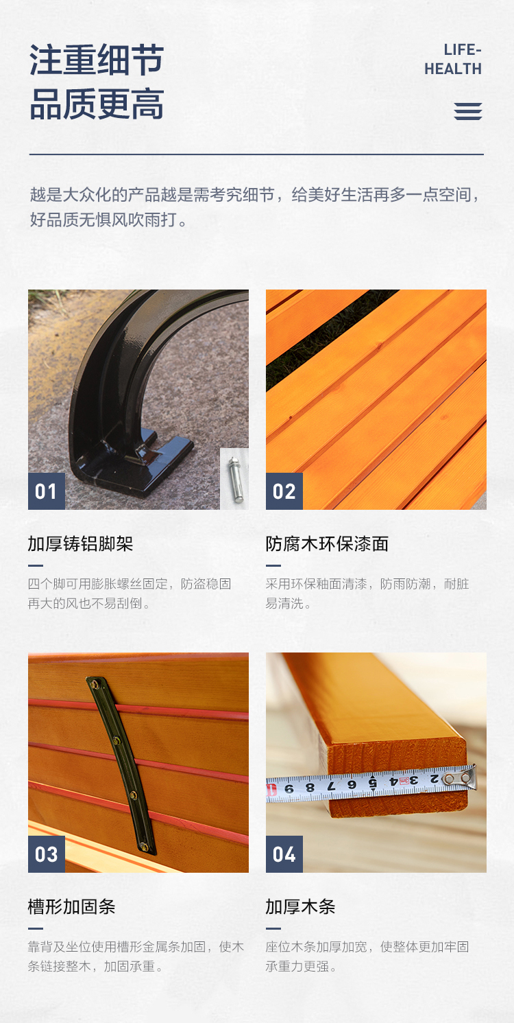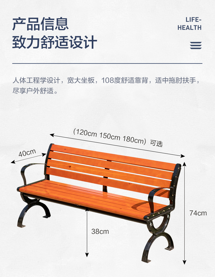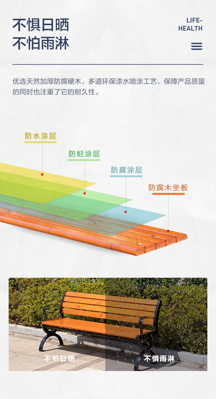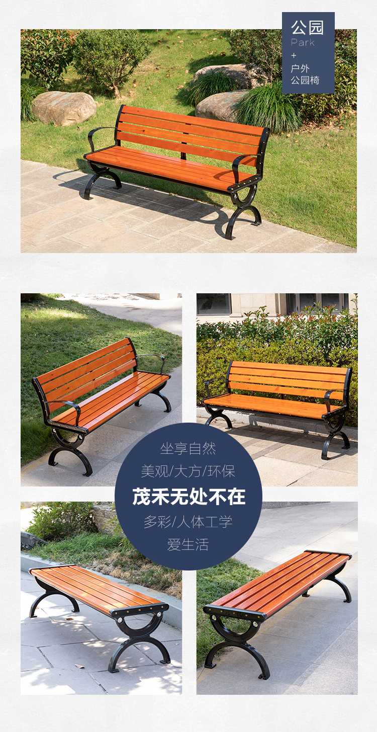 Ghế công viên ngoài trời ghế dài ngoài trời ghế dài sân trong ghế thư giãn ghế ngoài trời chống ăn mòn gỗ rắn gỗ nhựa tựa lưng