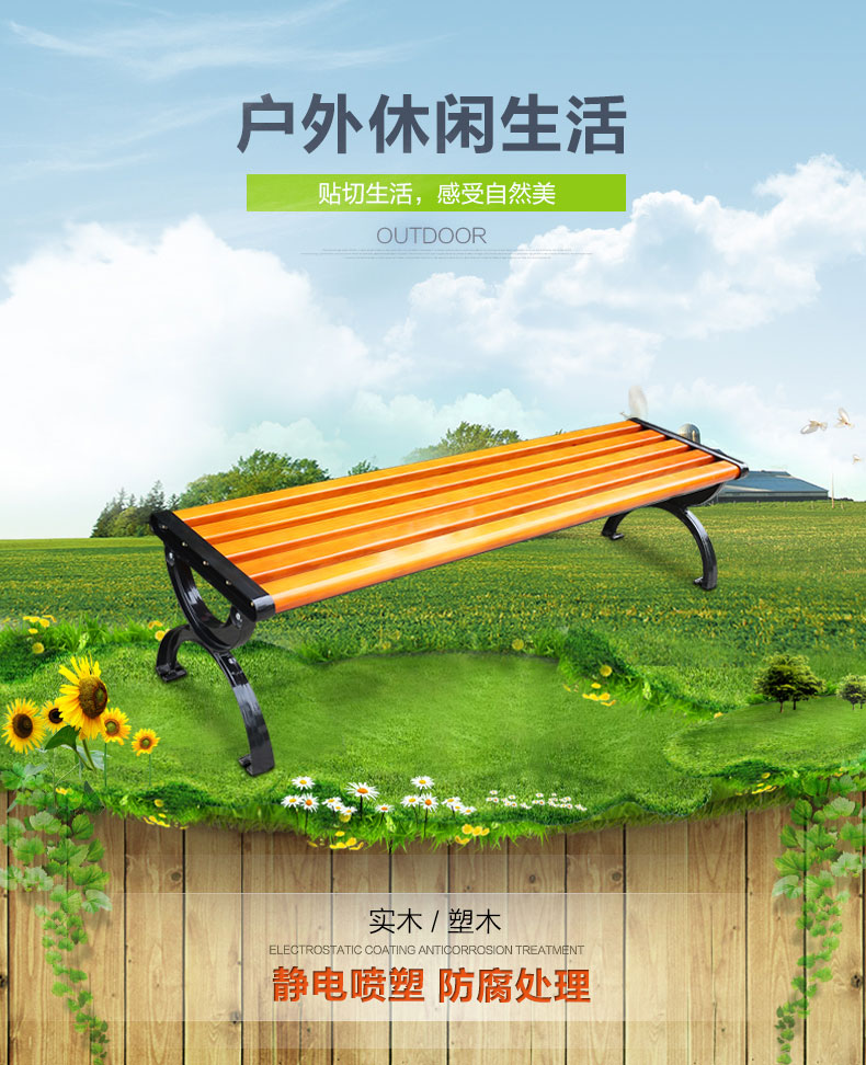 Ghế công viên ngoài trời ghế dài sát trùng gỗ nhựa giả gỗ sân vuông ngoài trời ghế dài thư giãn hàng ghế tựa lưng sắt mỹ thuật
