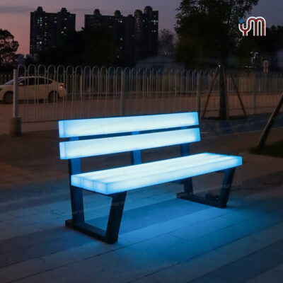Ghế công viên ngoài trời xuyên biên giới, ghế ngồi ngắm cảnh, ghế công cộng ở phố đi bộ thương mại, tựa lưng quay, ghế nghỉ phát sáng