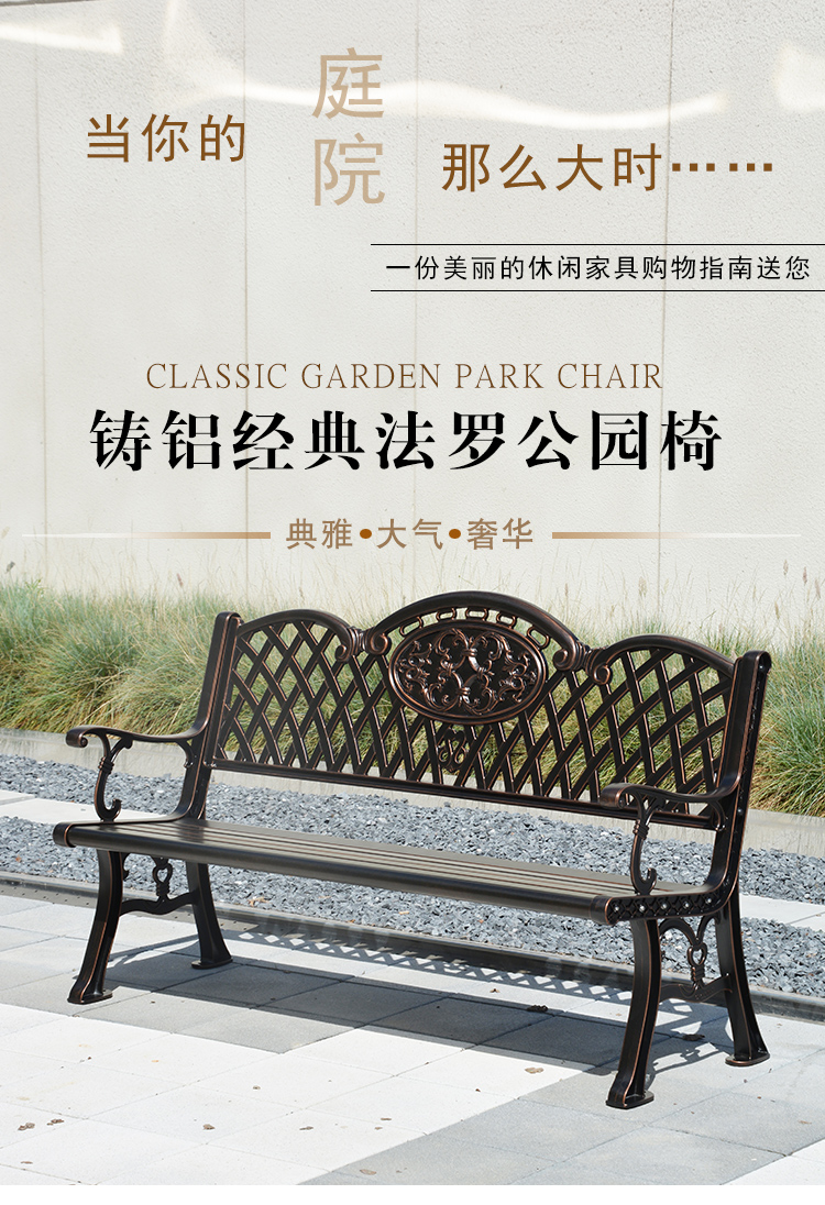 Ghế công viên nhôm đúc ngoài trời vuông ghế thư giãn bằng sắt rèn lưng ghế ngoài trời băng ghế sân vườn