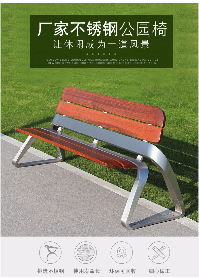 Ghế đá công viên ngoài trời, ghế inox, tựa lưng giải trí ngoài trời, ghế công cộng cộng đồng công viên gỗ chống ăn mòn