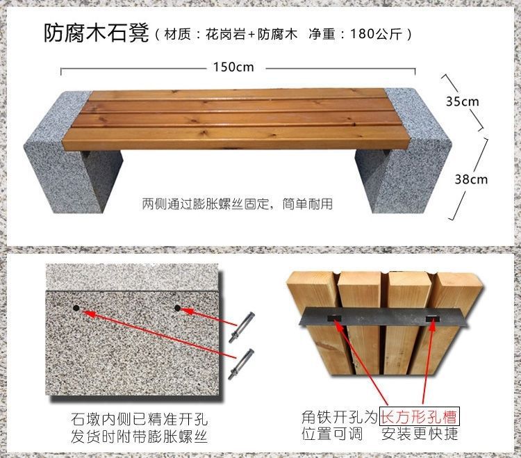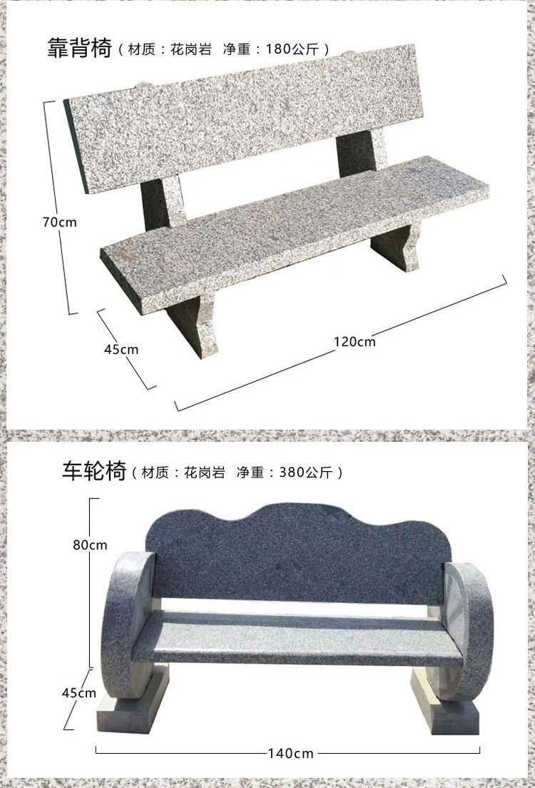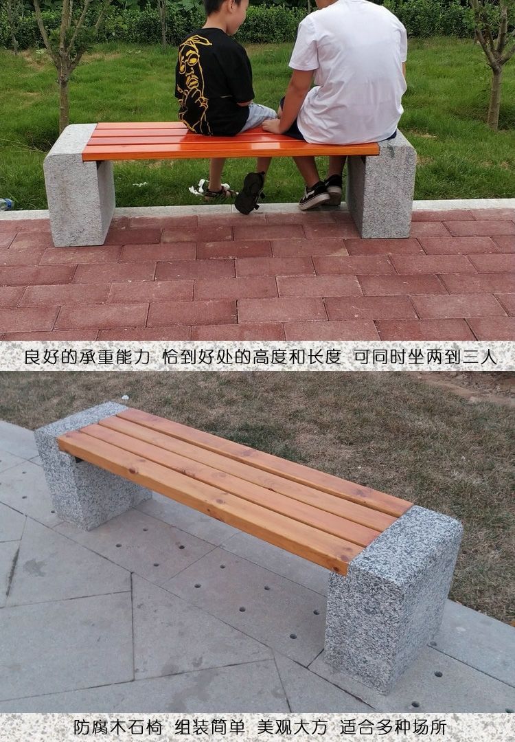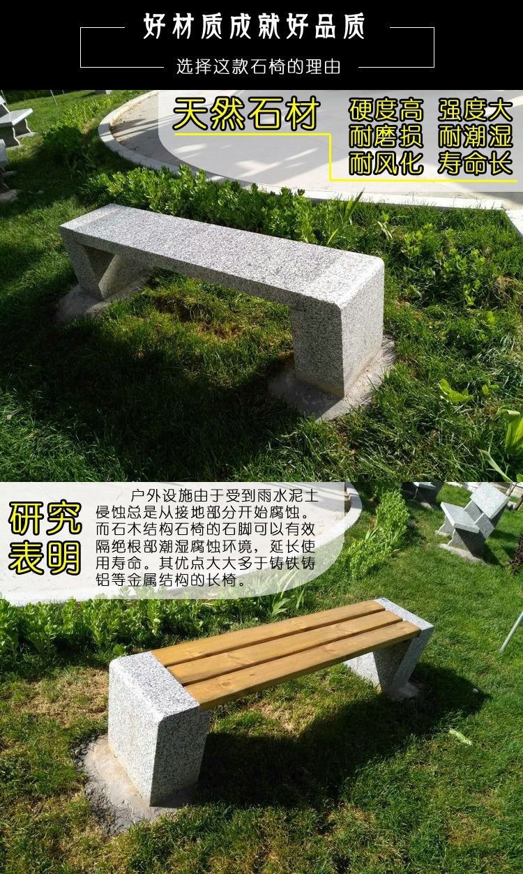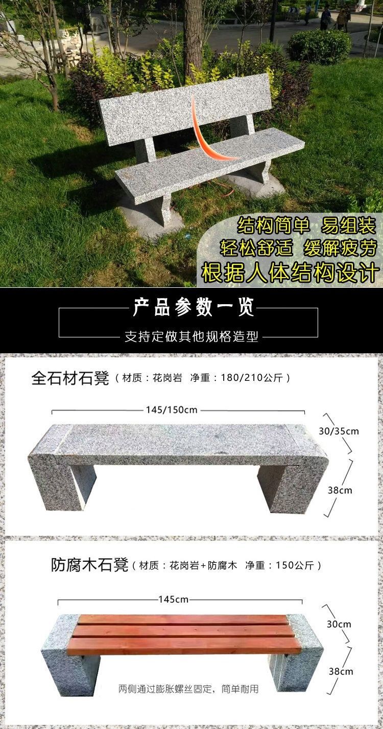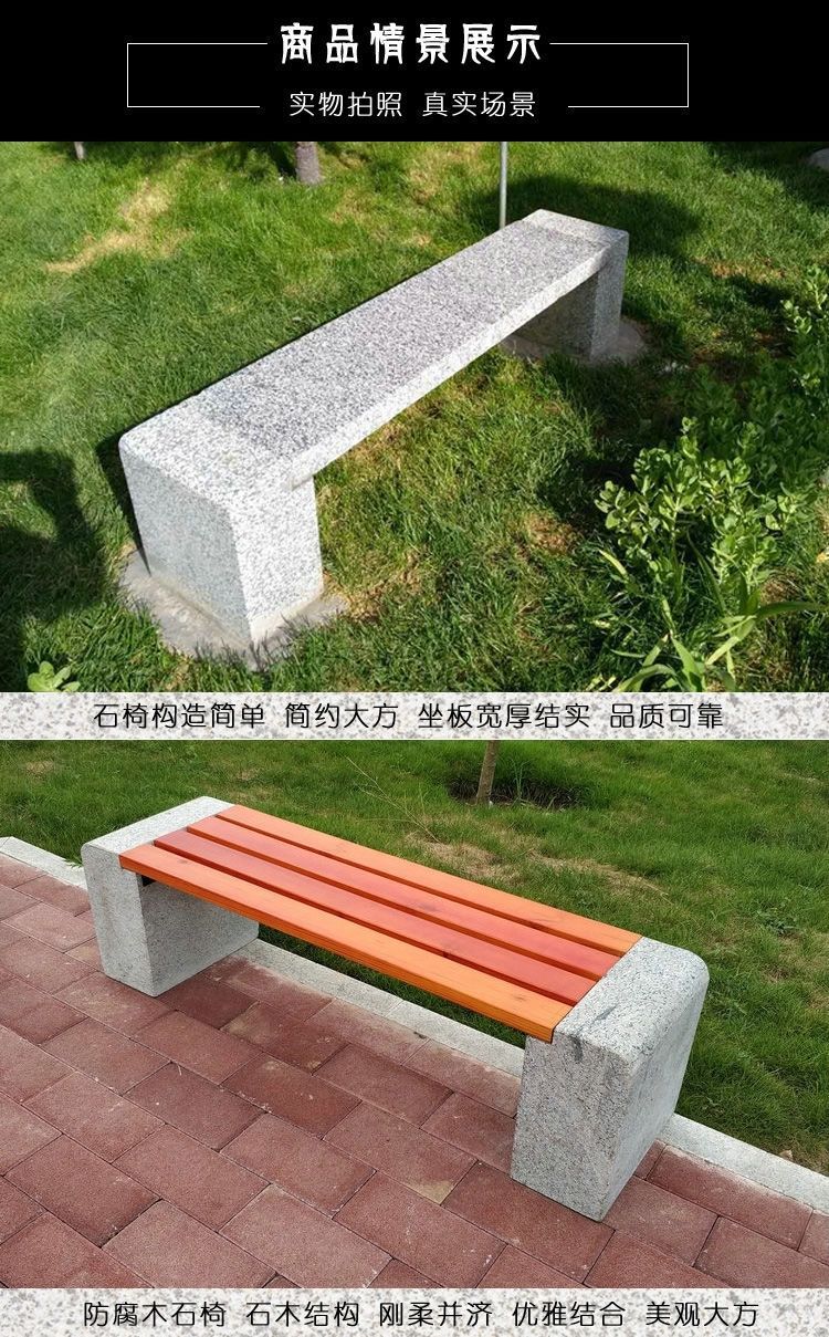 Ghế đẩu đá dài sân vườn ghế gỗ chống ăn mòn ngoài trời ghế đá công viên ghế đá hoa cương tựa lưng giải trí
