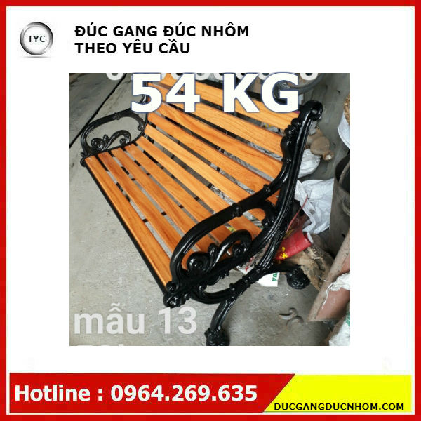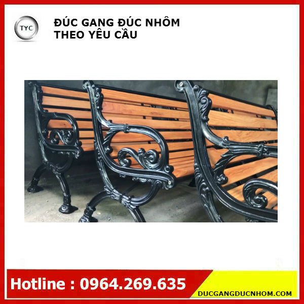 Ghế gang công viên có chân ghế làm bằng gang và sơn tĩnh điện. Ghế công viên thường chọn vật liệu làm bằng gang đúc vì gang nặng và bền. Ghế gang được sơn tĩnh điện ko bị mục nát như ghế sắt. Cũng như đúc liền khối nên độ bền rất cao ko hề có 1 mối hàn nào. Nên ghế gang rất thích hợp để ngoài trời hoặc công viên.