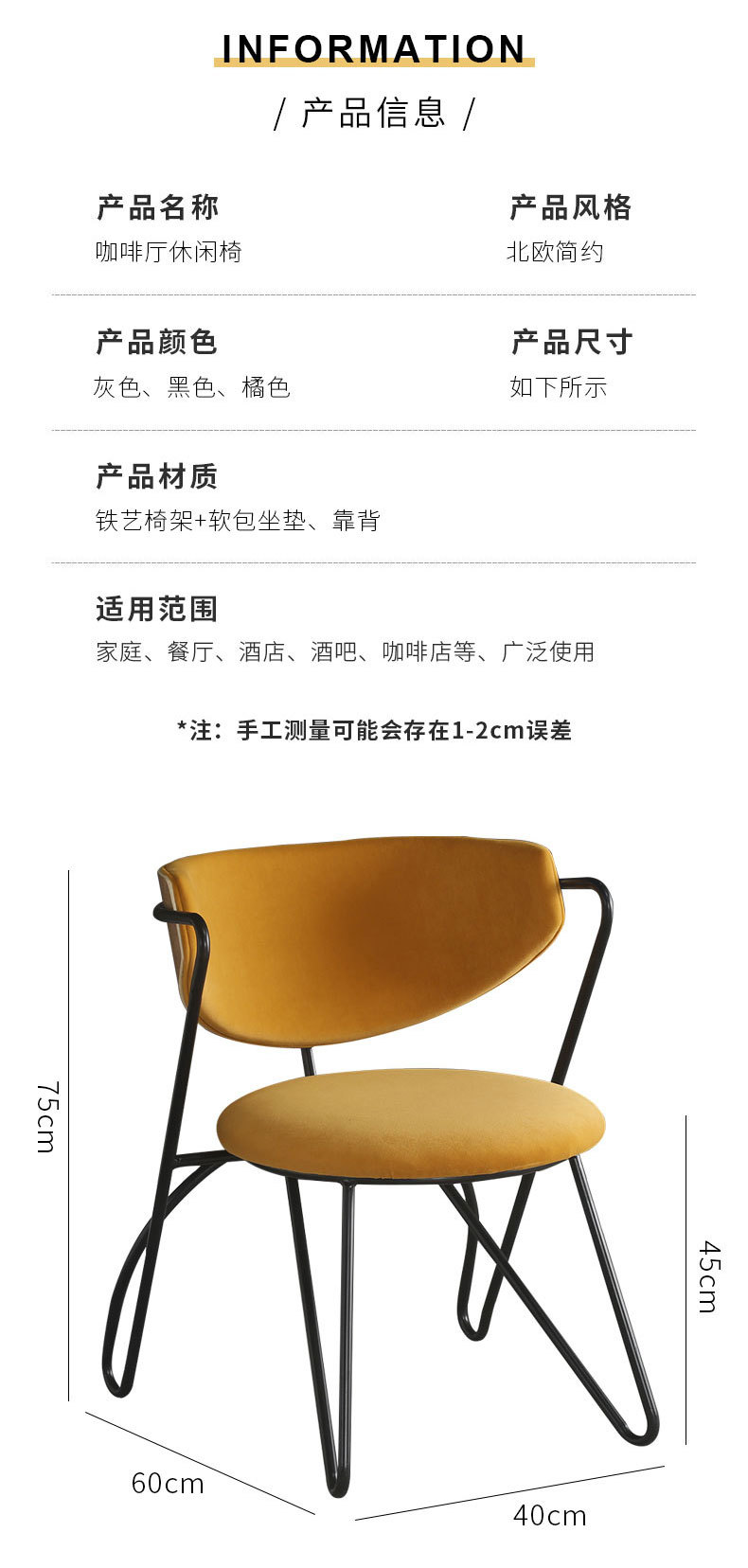 Ghế giải trí bằng sắt rèn phong cách công nghiệp ghế ăn cổ điển mở rộng túi mềm lưng ghế nhà tay vịn bàn ăn nhà hàng bàn ghế xuyên biên giới
