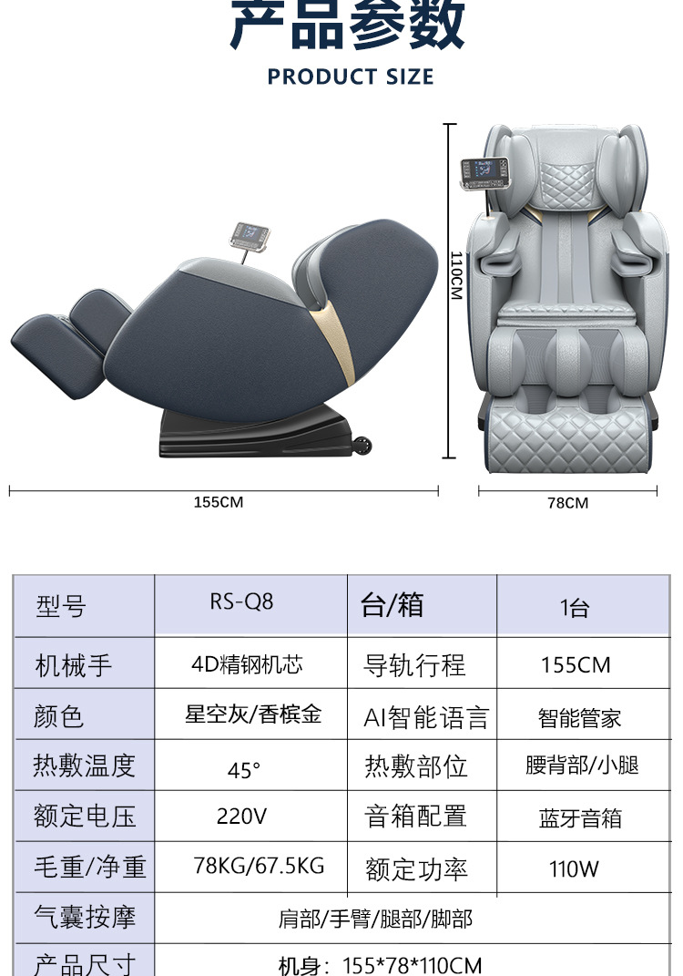 Ghế massage đường sắt dẫn hướng SL mới Ruisen của Đức hoàn toàn tự động tại nhà bằng giọng nói thông minh sang trọng không gian viên nang dành cho người cao tuổi