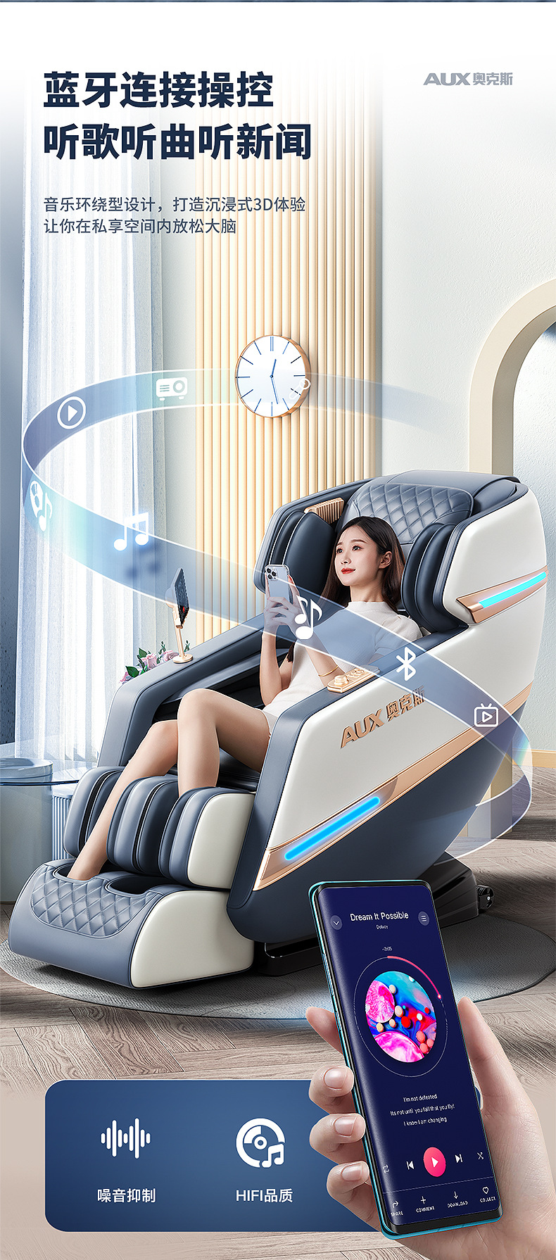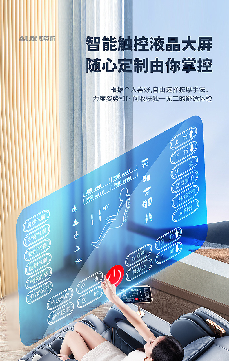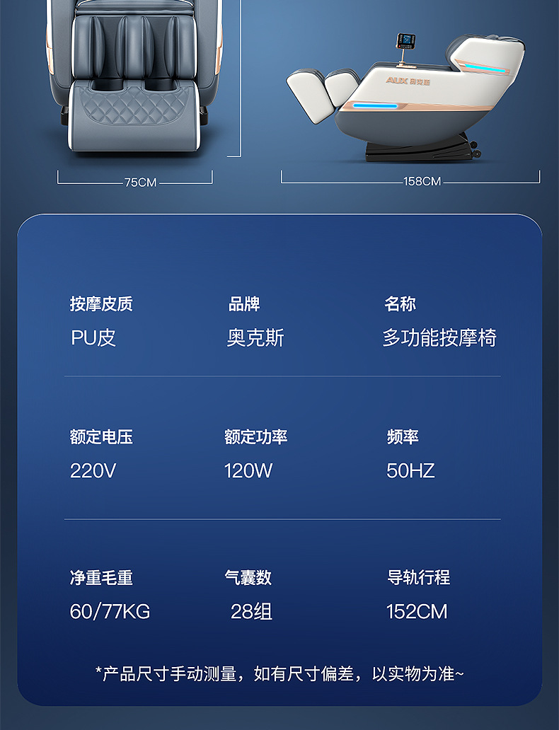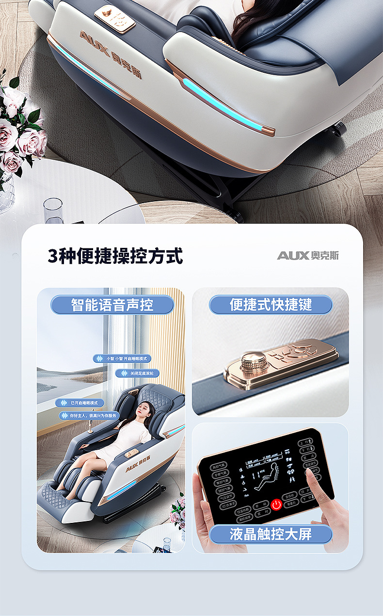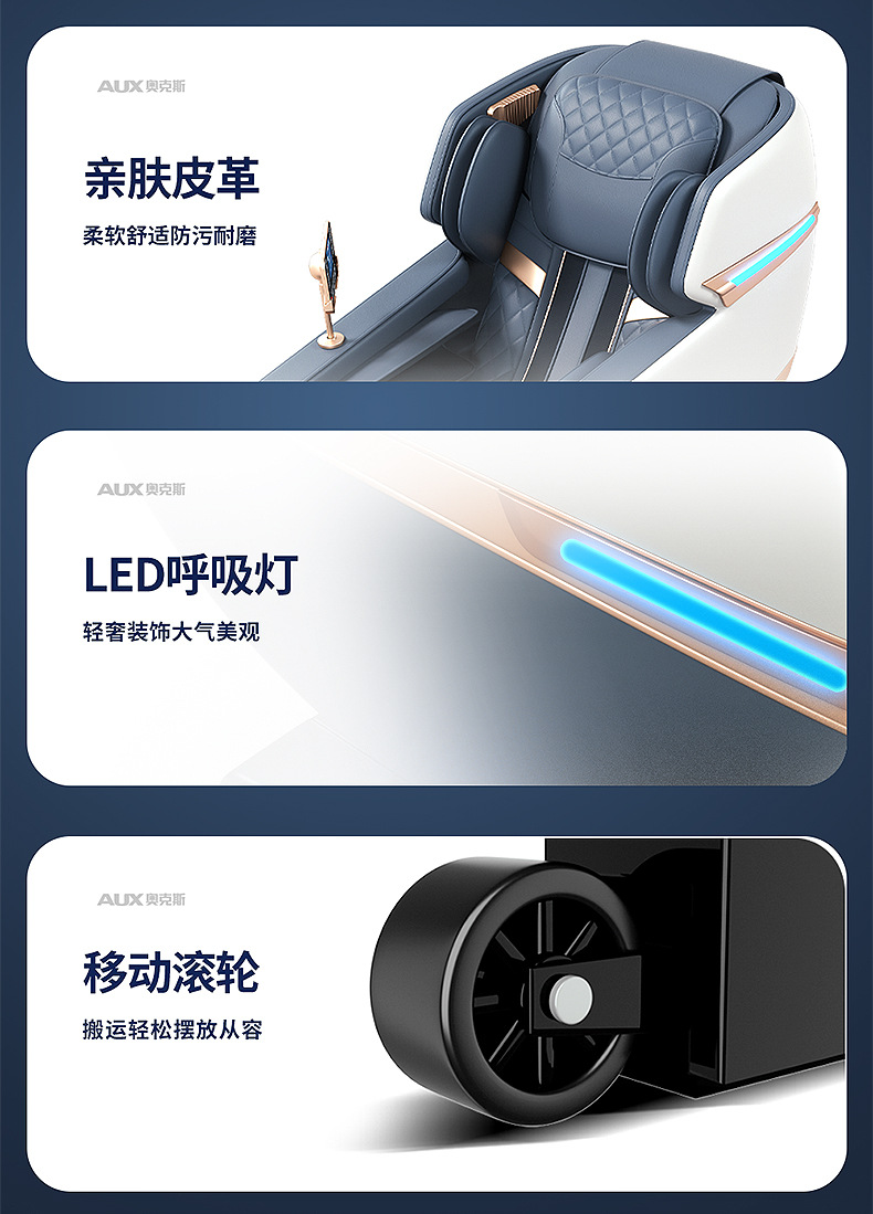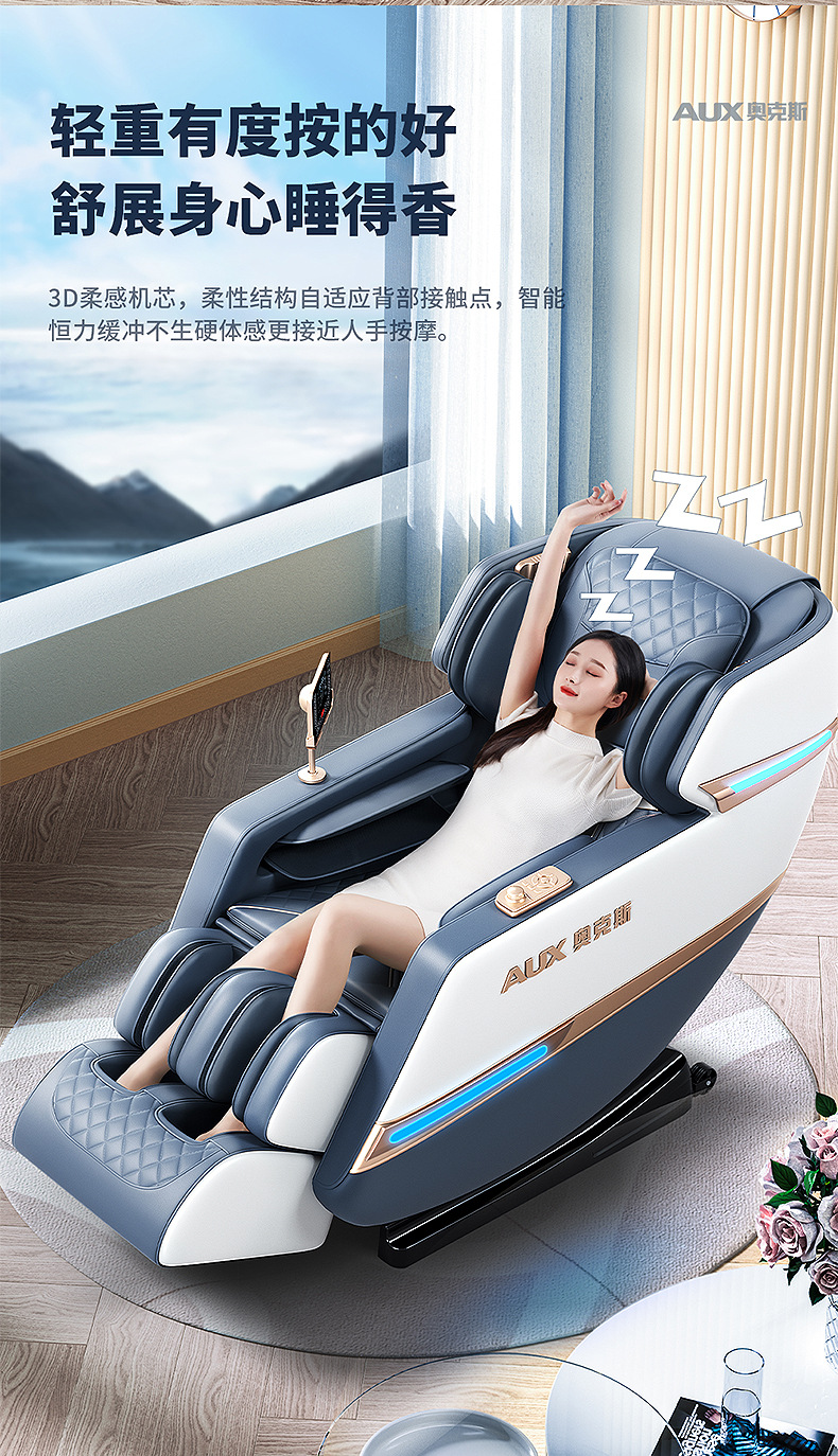Loại chuyển động: Massage bằng tay 4D Điều khiển thông minh: Có Danh mục sản phẩm: Ghế massage tại nhà Chức năng: Chức năng nghe nhạc/Điều khiển bằng dây cầm tay/Điều khiển bằng dây cầm tay Màu sắc: Xanh dương và trắng Vải: Da PU Loại đường ray: Loại SL Phương pháp lắp đặt đường ray : Đúc tích hợp Số lượng túi khí được lắp đặt: 61 trở lên Nguyên lý massage: Rung/đập/nén nóng/túi khí/mát-xa/chạm/nhào/nhào