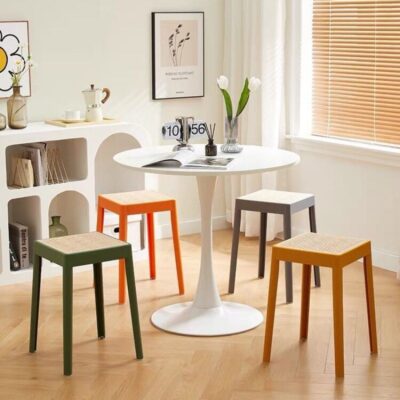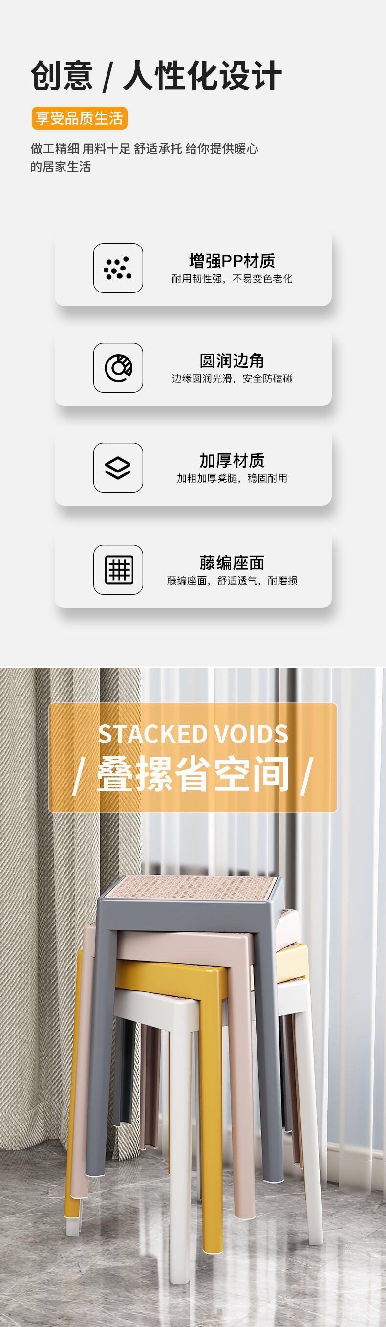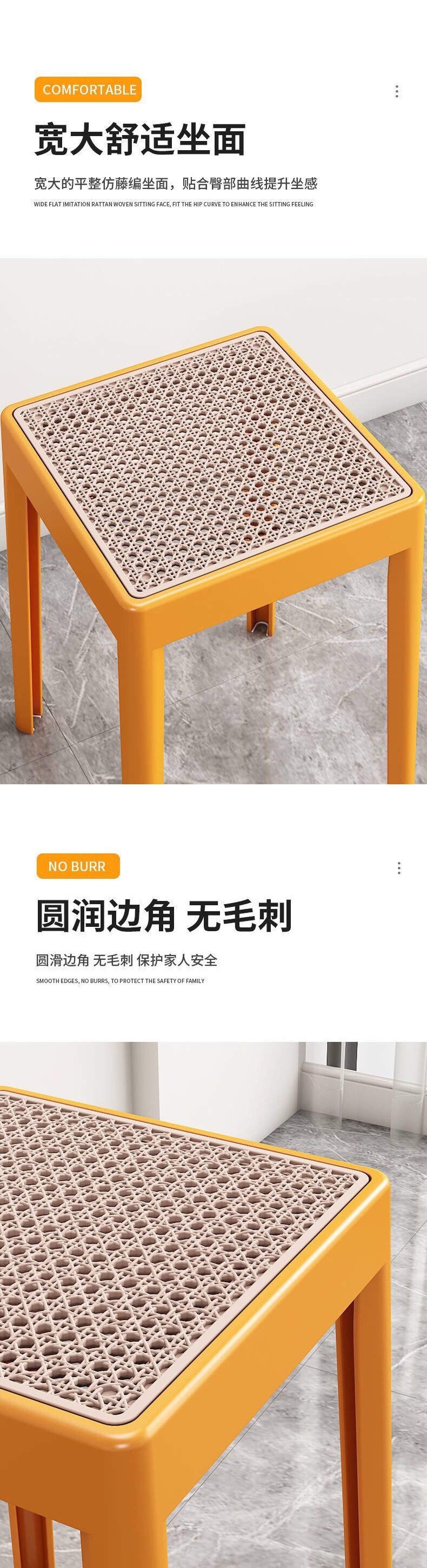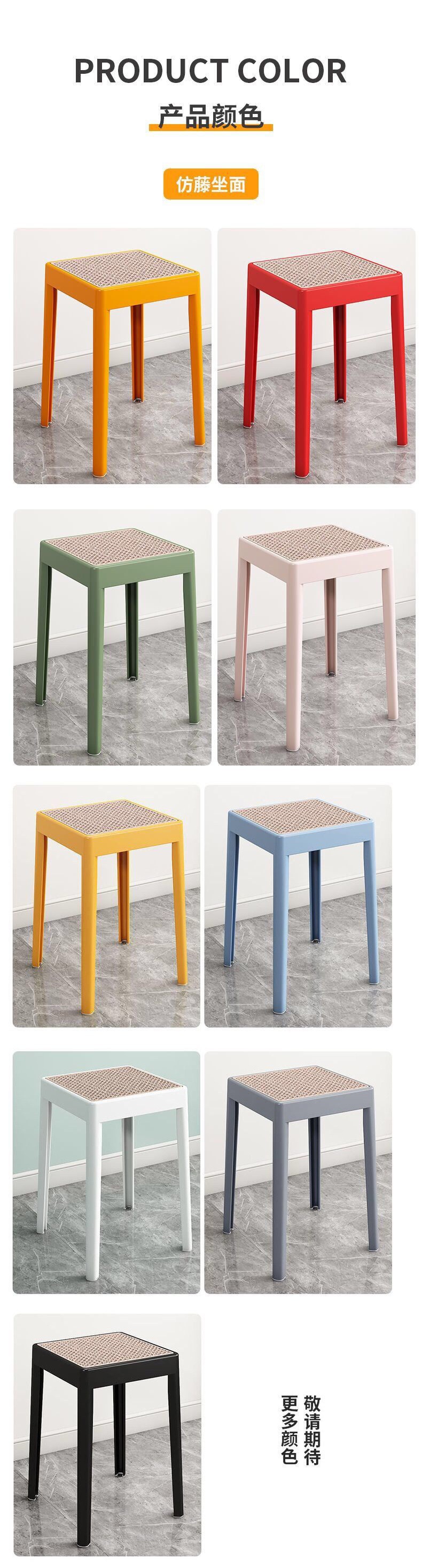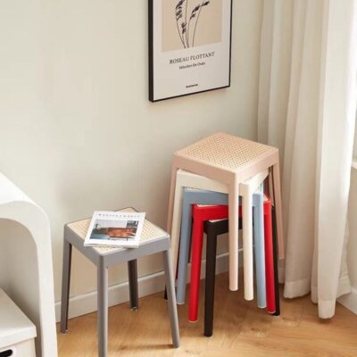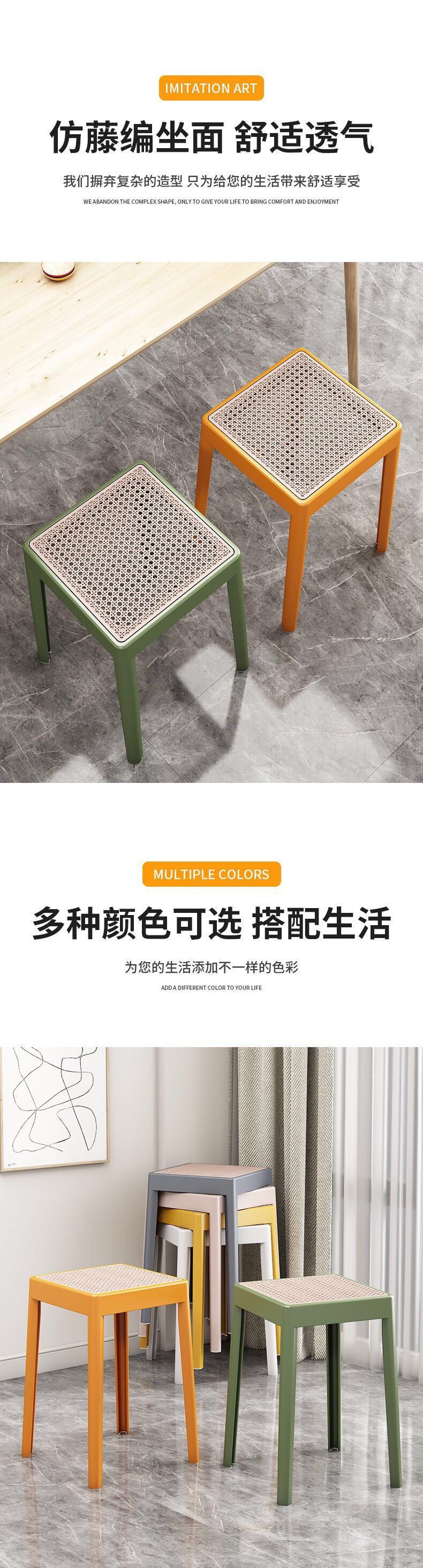 Ghế Mây Dày Retro Hộ Gia Đình Cao Ghế Nhựa Người Lớn Tròn Phân Phòng Khách Bàn Ăn Xếp Chồng Vuông Phân