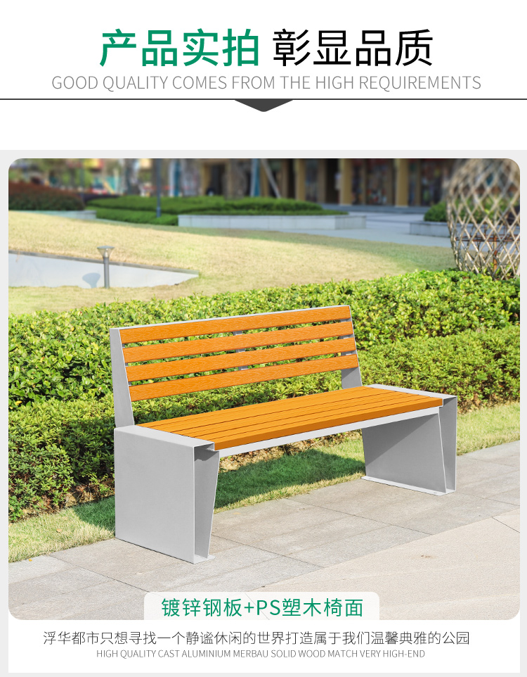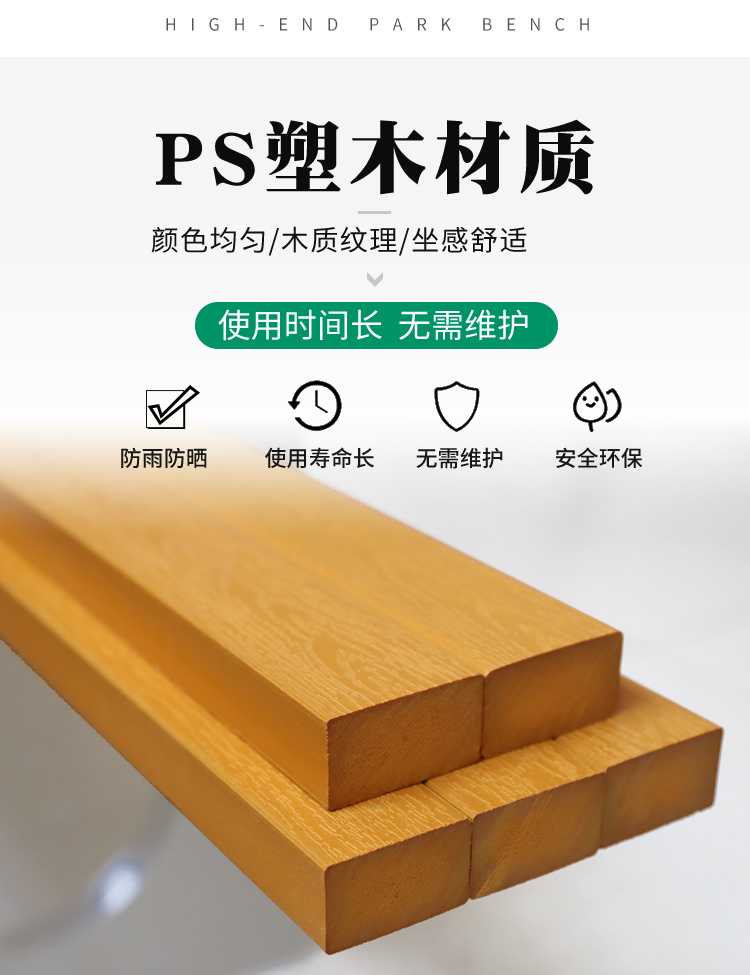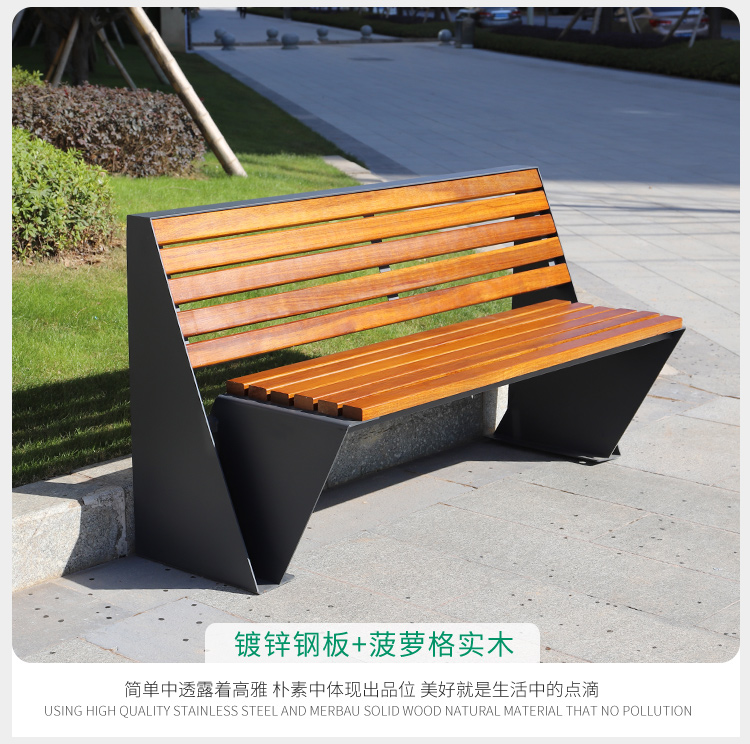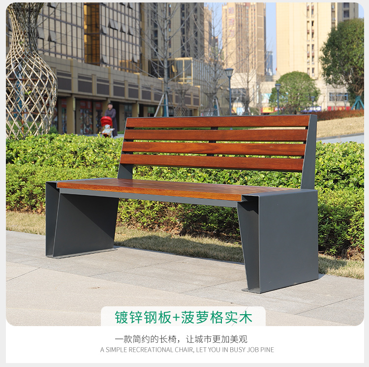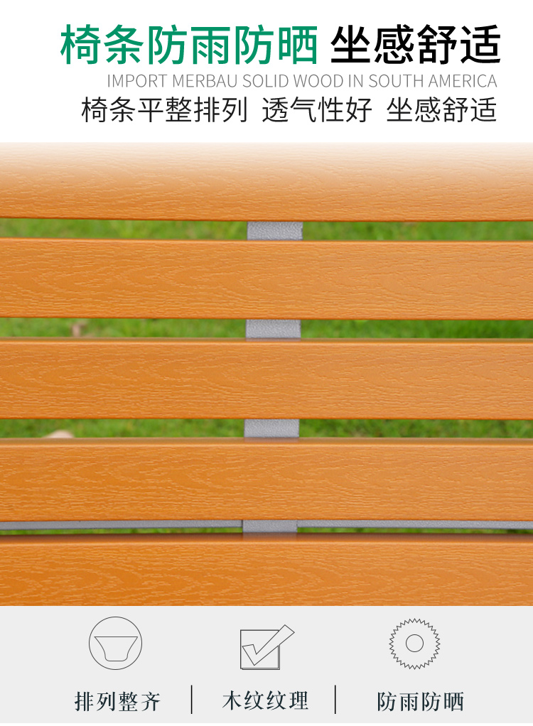 Ghế nghỉ ngoài trời, bãi cỏ dải sắt ngoài trời, ghế dài công viên hình vuông bằng gỗ đôi đơn giản, ghế dài