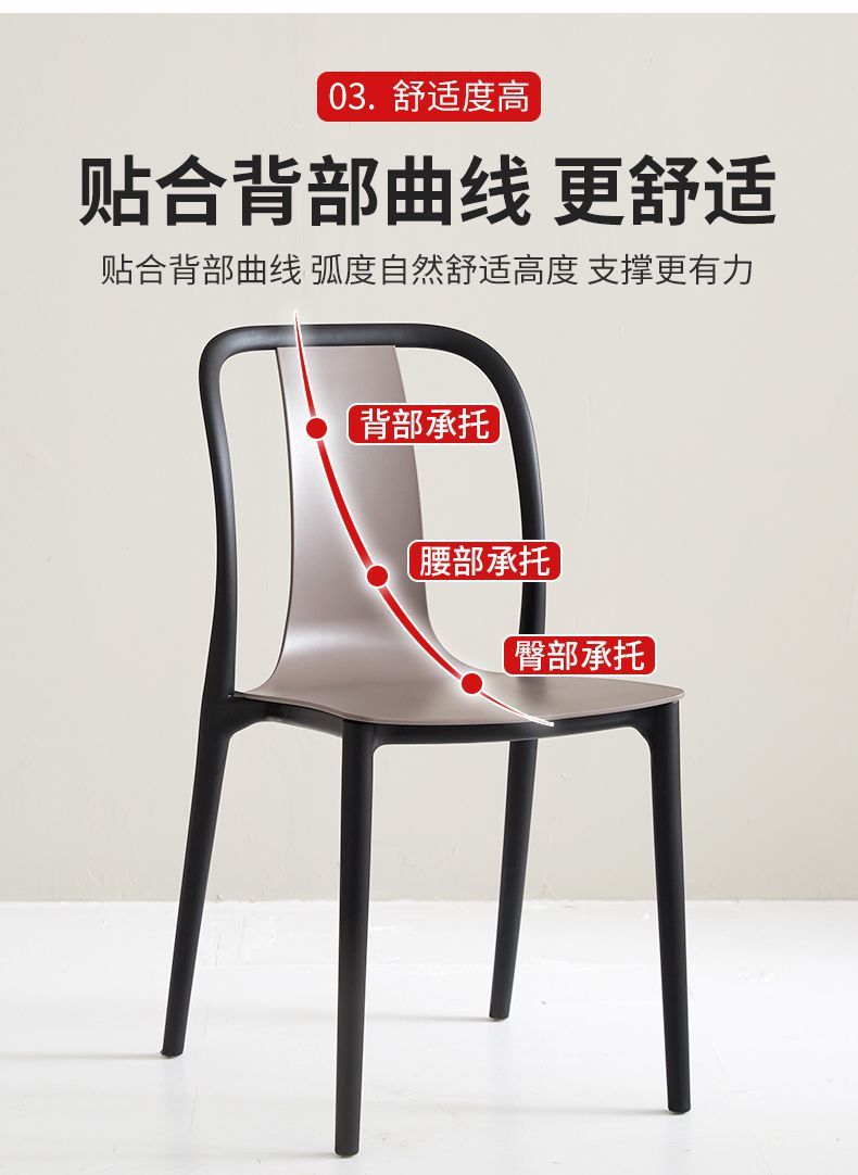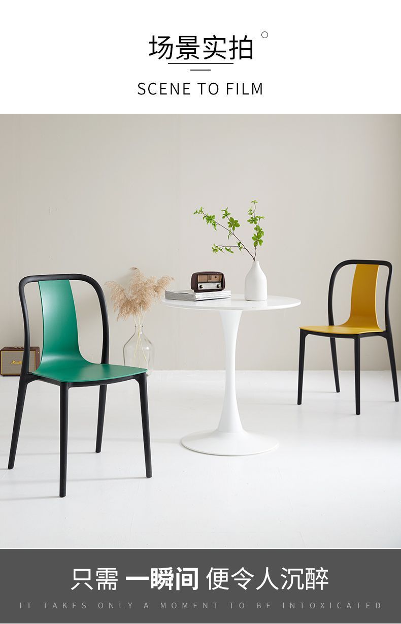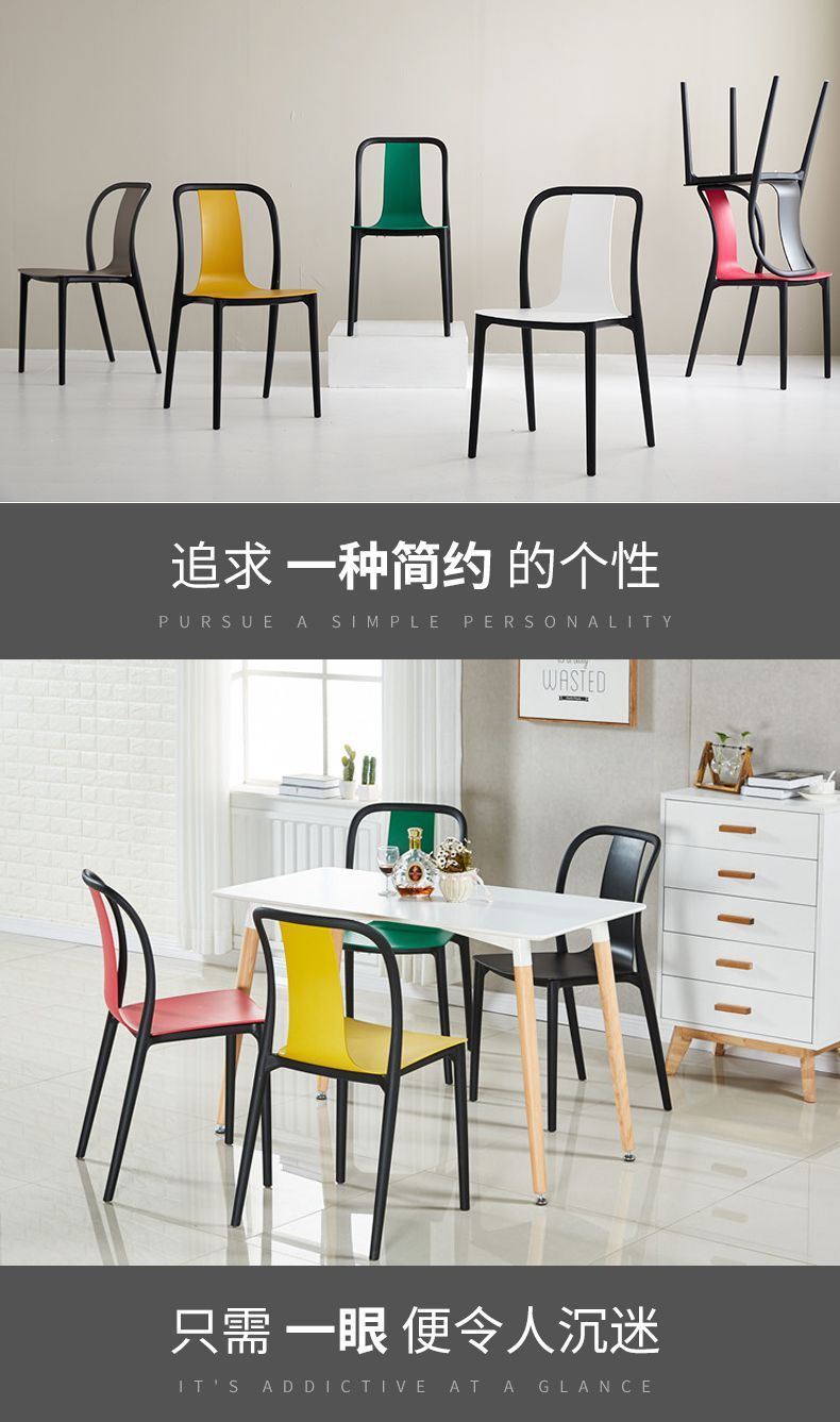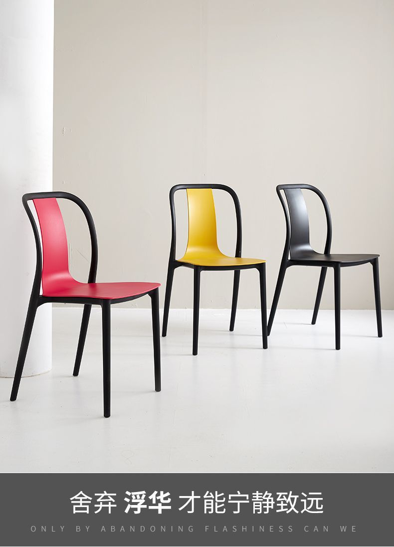 . Ghế nhựa Bắc Âu tựa lưng hiện đại đơn giản dành cho người lớn màu đỏ ghế ăn có thể được xếp chồng lên nhau Bàn ăn gia đình dày thông thường
