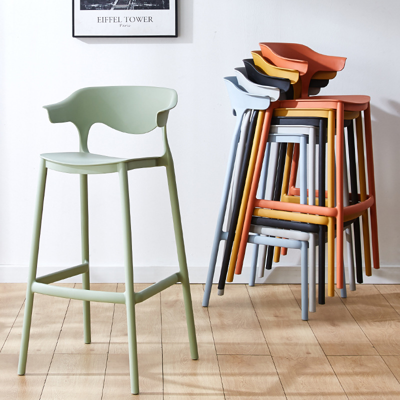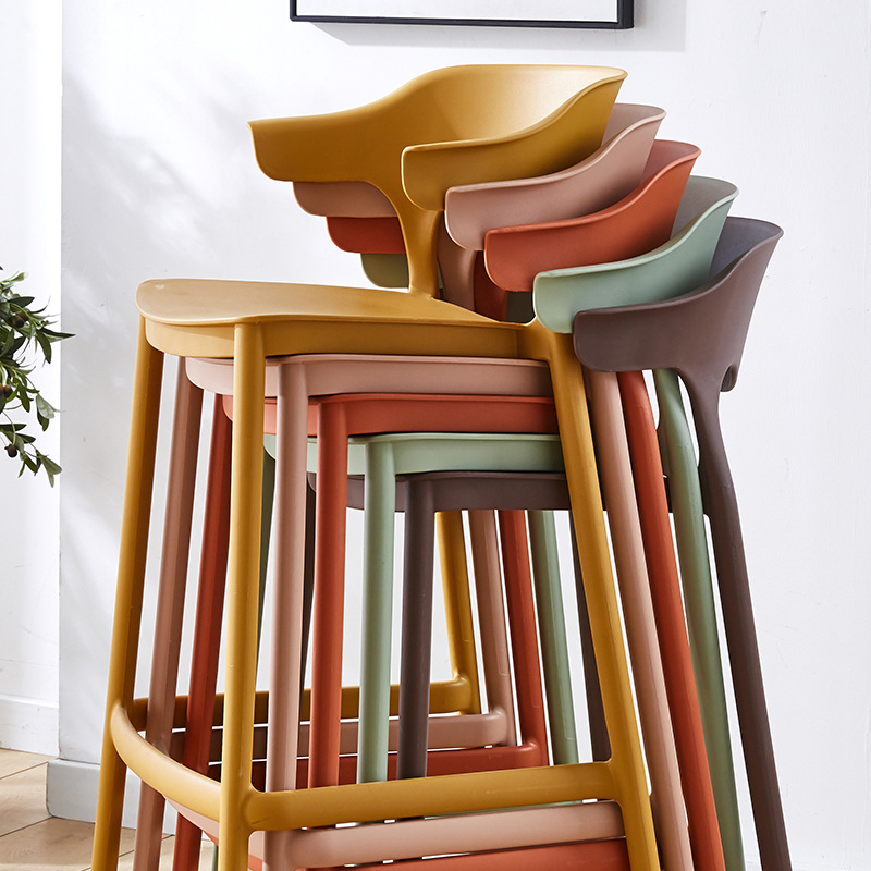 Ghế nhựa có tựa lưng dày tại nhà có thể xếp chồng lên nhau PP Bắc Âu văn phòng đơn giản màu trắng ghế ăn cafe in