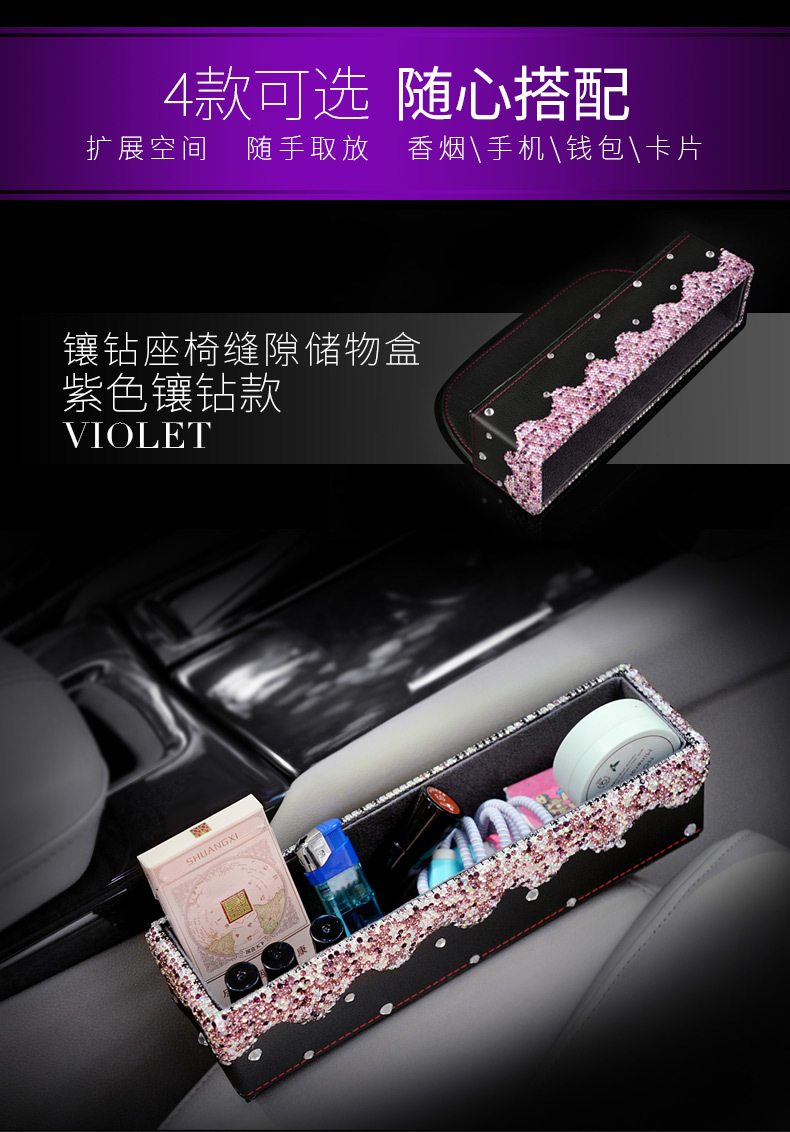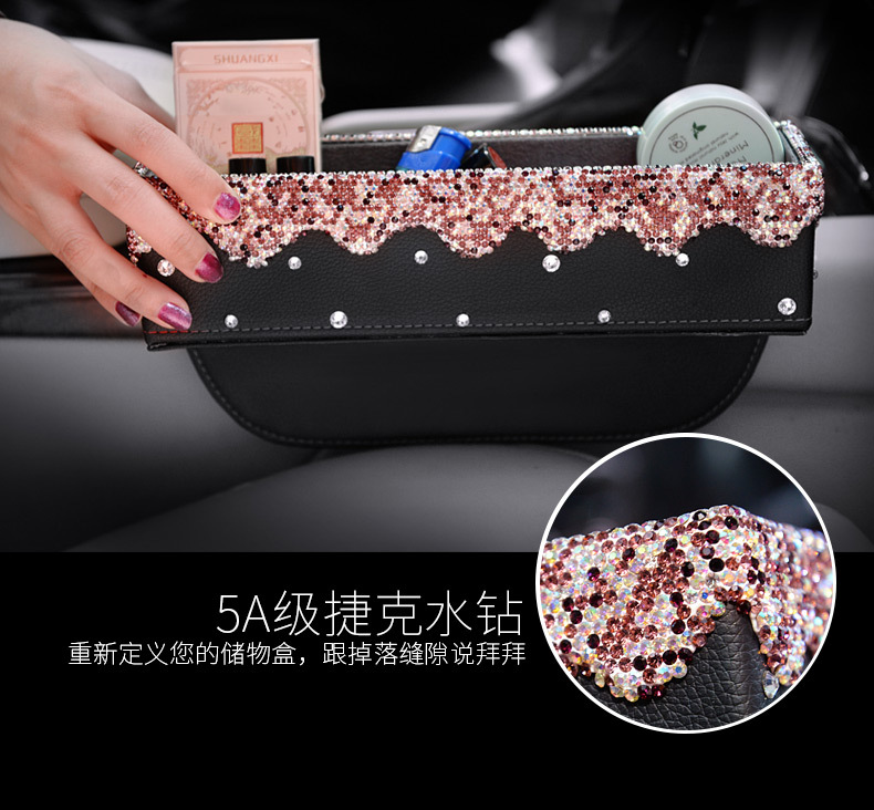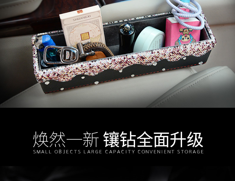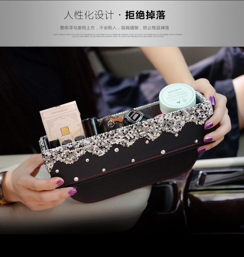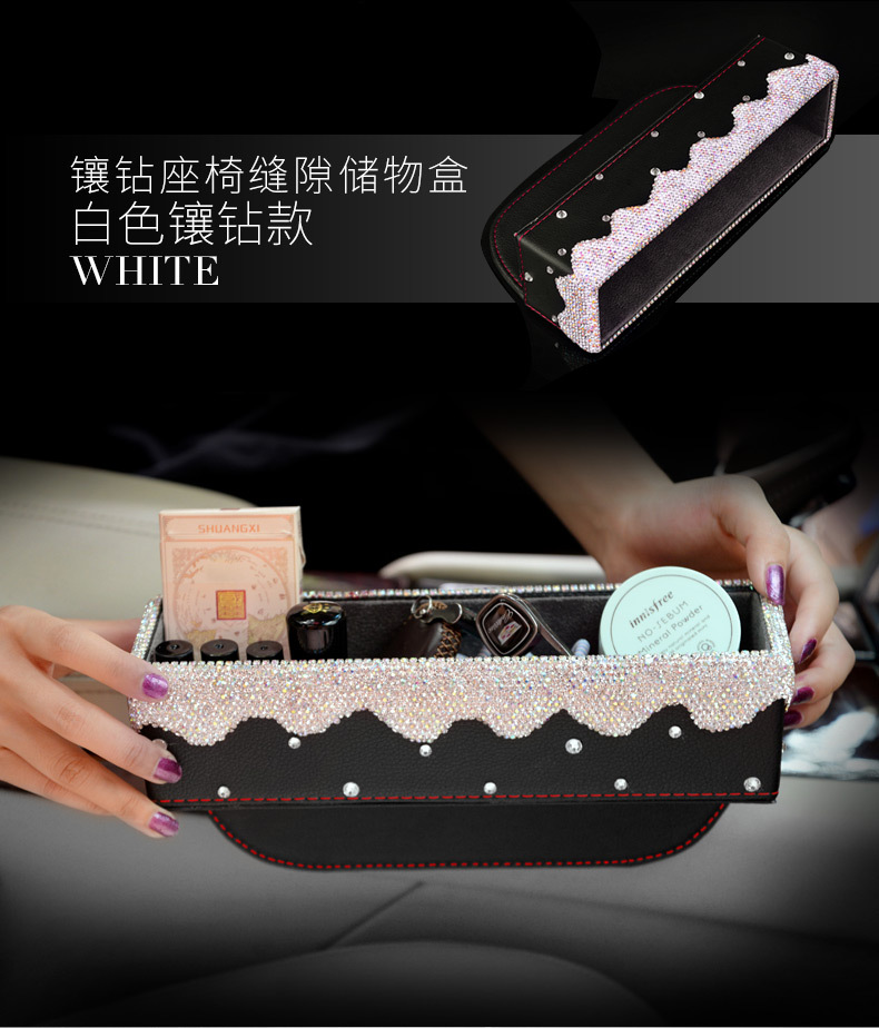 Ghế ô tô khoảng cách hộp lưu trữ đính kim cương nữ dễ thương ô tô khoảng cách hộp lưu trữ nội thất ô tô hộp lưu trữ