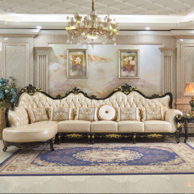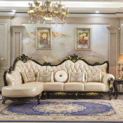 Ghế sofa da phong cách châu Âu kết hợp phòng khách sang trọng kích thước gói loại căn hộ Gỗ đàn hương đen Gỗ cứng chạm khắc góc hình chữ L Sofa