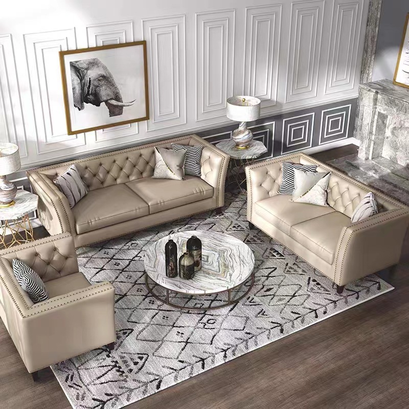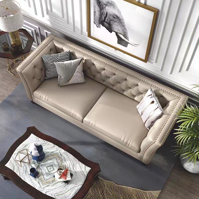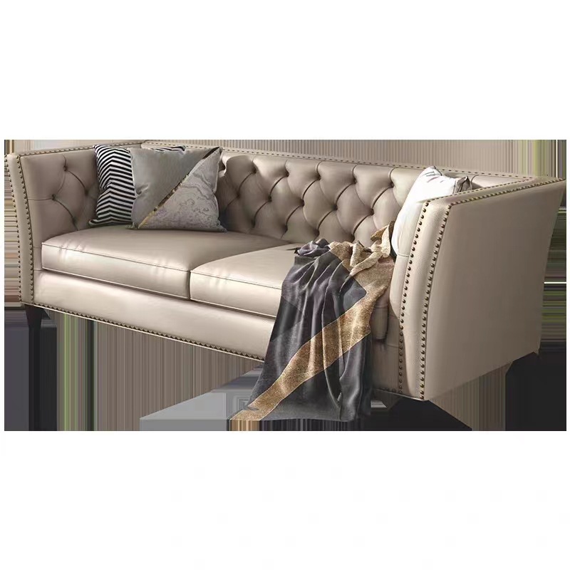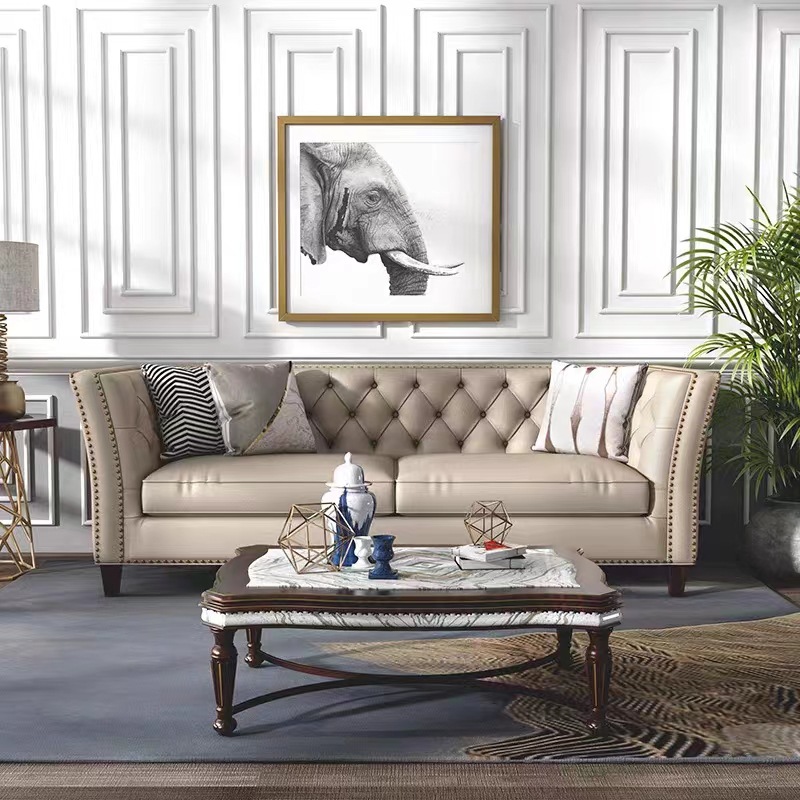 Ghế sofa da sang trọng nhẹ của Mỹ kích thước phòng khách căn hộ 123 kết hợp hiện đại tối giản sofa gỗ nguyên khối phong cách châu Âu kiểu Pháp