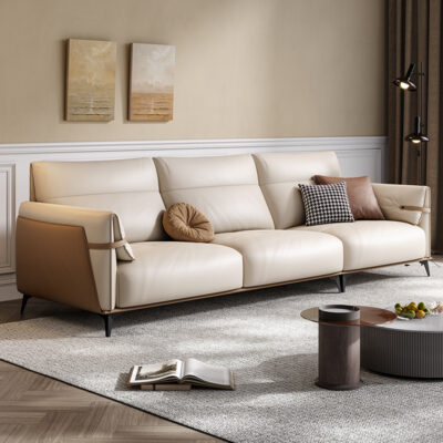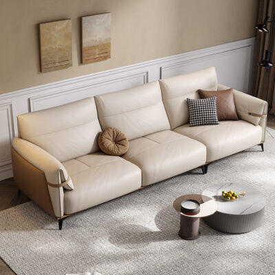 Ghế sofa da tối giản kiểu Ý màu kem phong cách hiện đại phòng khách sang trọng căn hộ lớn và nhỏ da nghệ thuật hàng thẳng ghế sofa ba chỗ ngồi