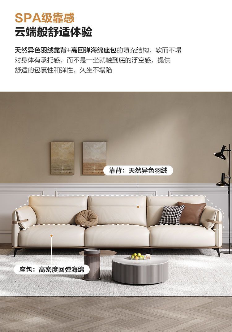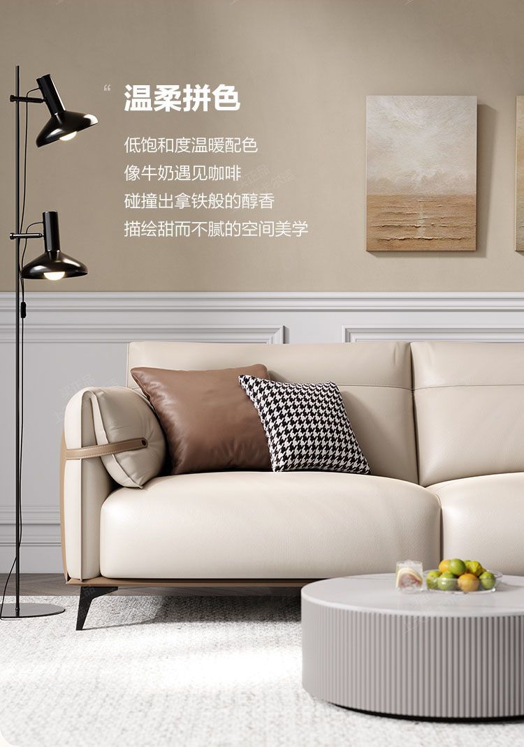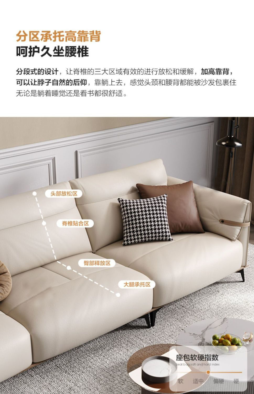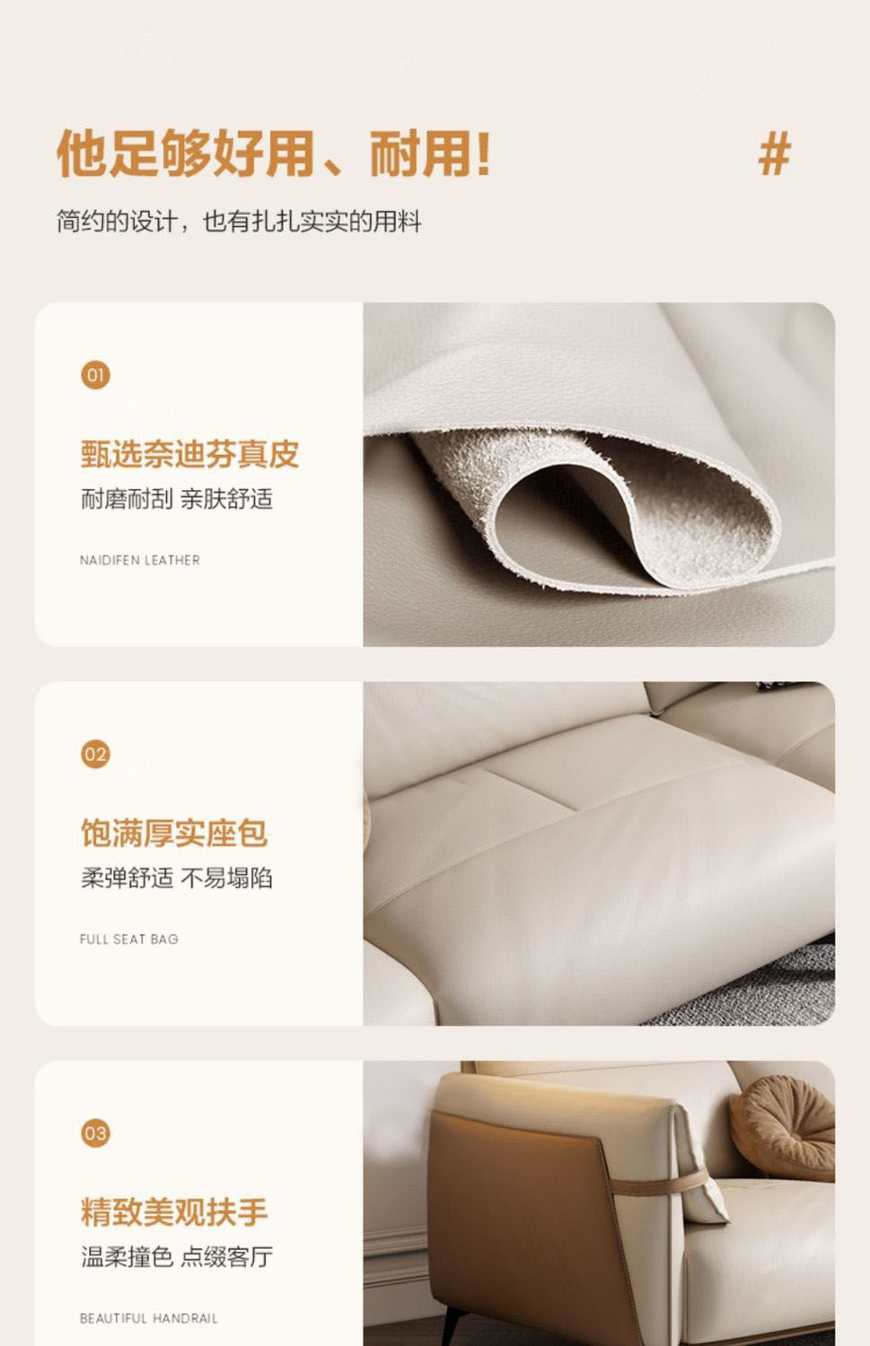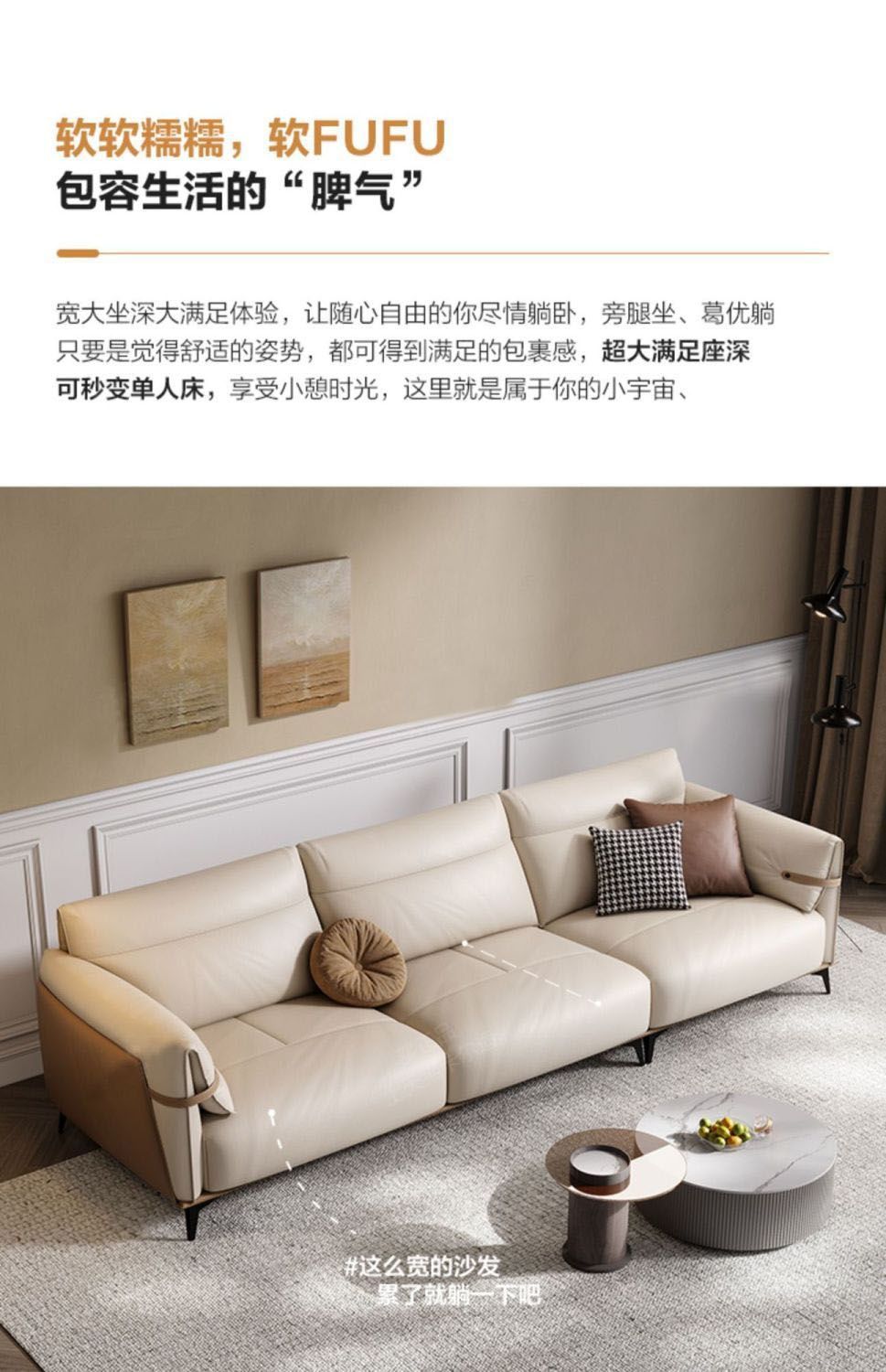 Ghế sofa da tối giản kiểu Ý màu kem phong cách hiện đại phòng khách sang trọng căn hộ lớn và nhỏ da nghệ thuật hàng thẳng ghế sofa ba chỗ ngồi