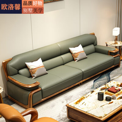 Ghế sofa gỗ mun cao cấp phong cách Trung Quốc mới đơn giản bằng da kết hợp phòng khách Nội thất gỗ nguyên khối lớp đầu tiên bằng da bò chất lượng cao