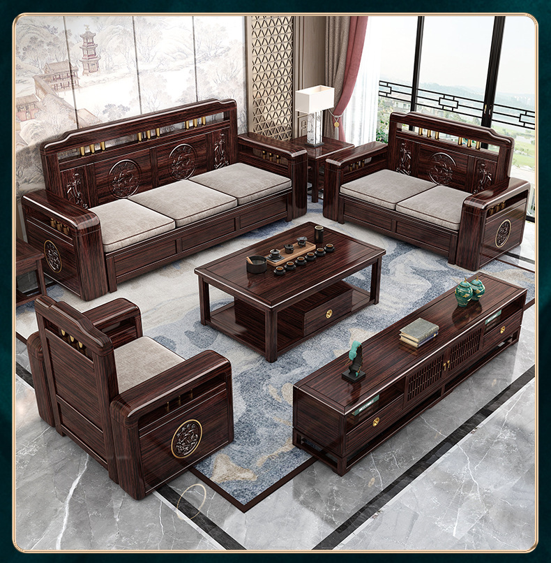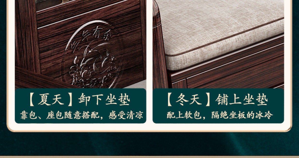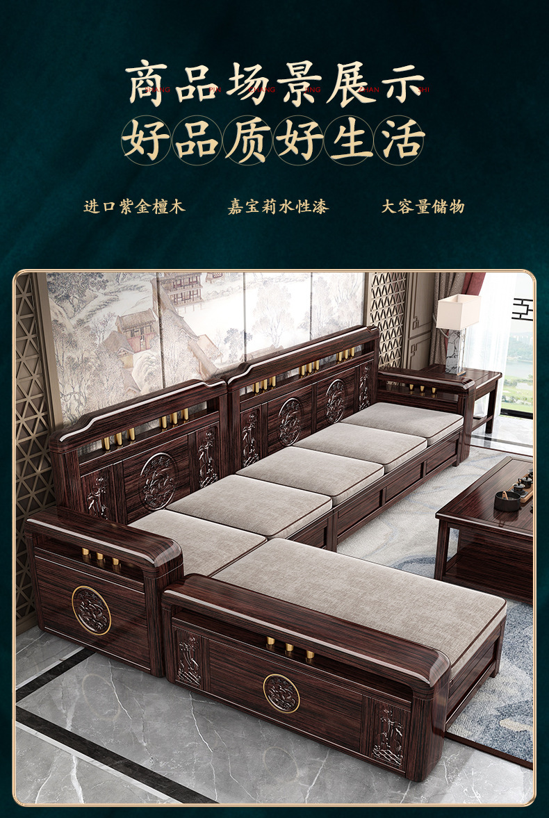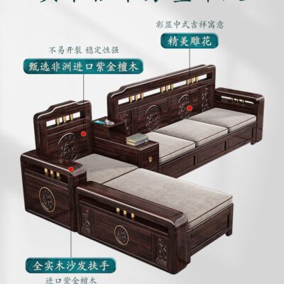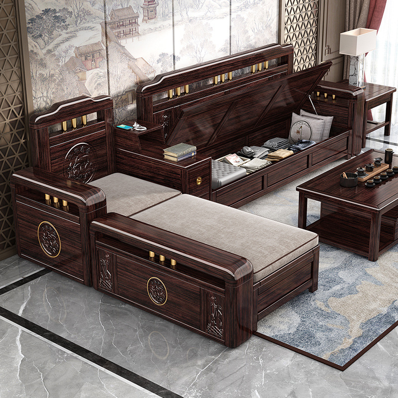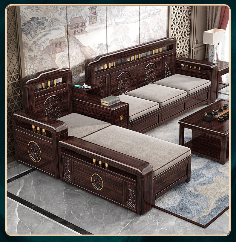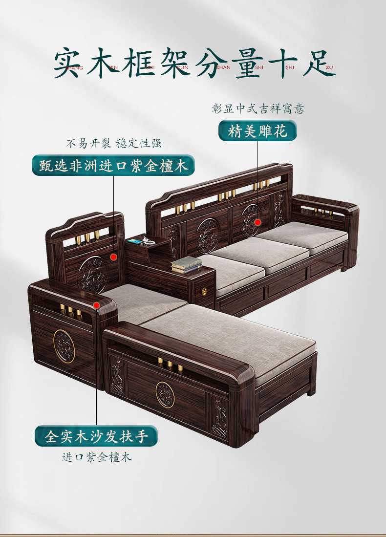 Ghế sofa gỗ nguyên khối bằng gỗ đàn hương màu vàng tím mùa đông và mùa hè sử dụng kép mới theo phong cách Trung Quốc mới phòng khách ghế dài lưu trữ góc sofa nội thất kết hợp