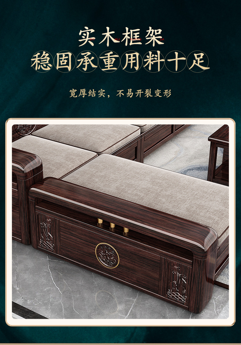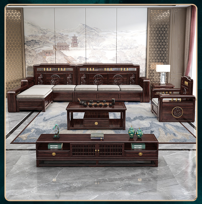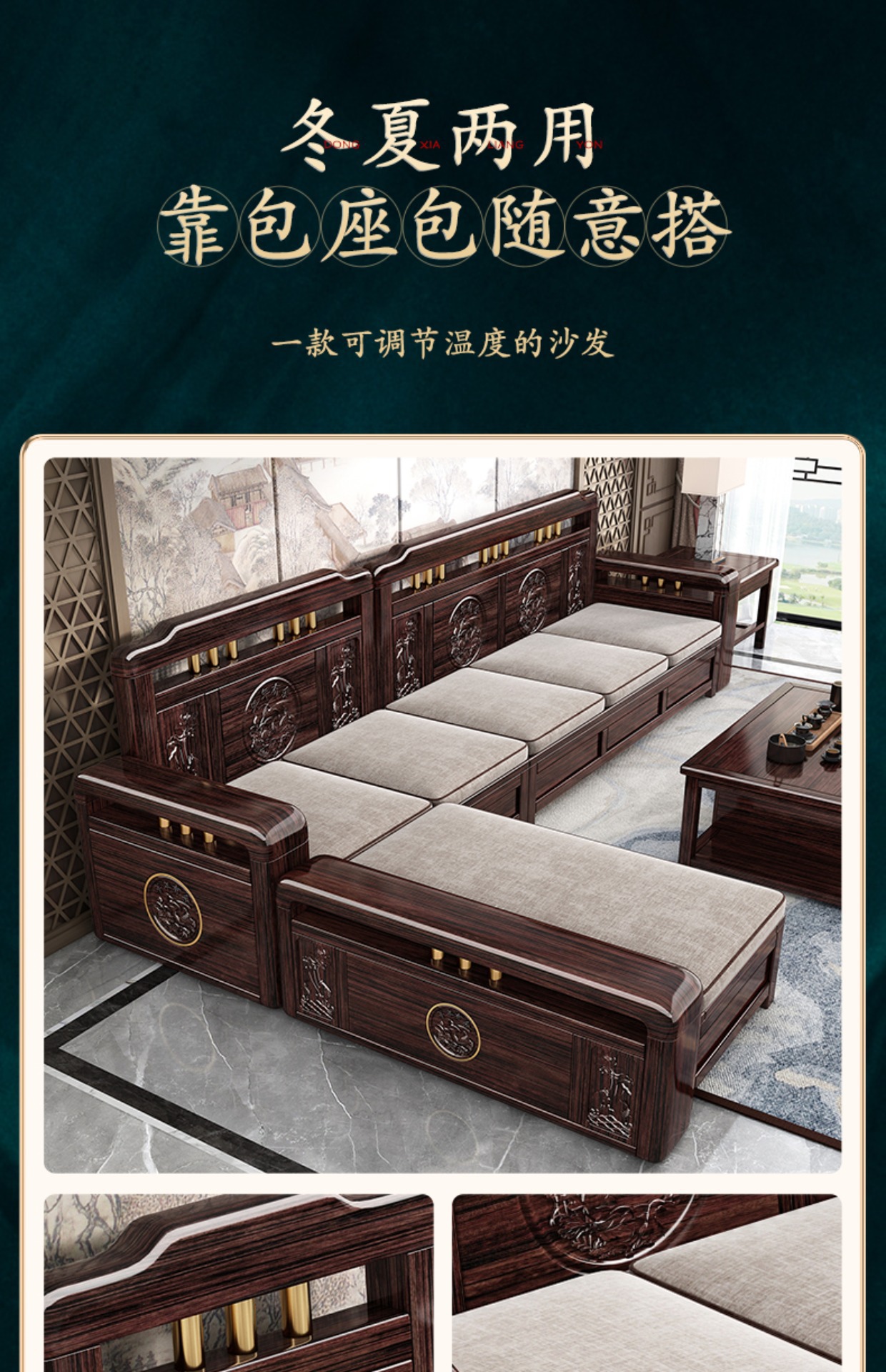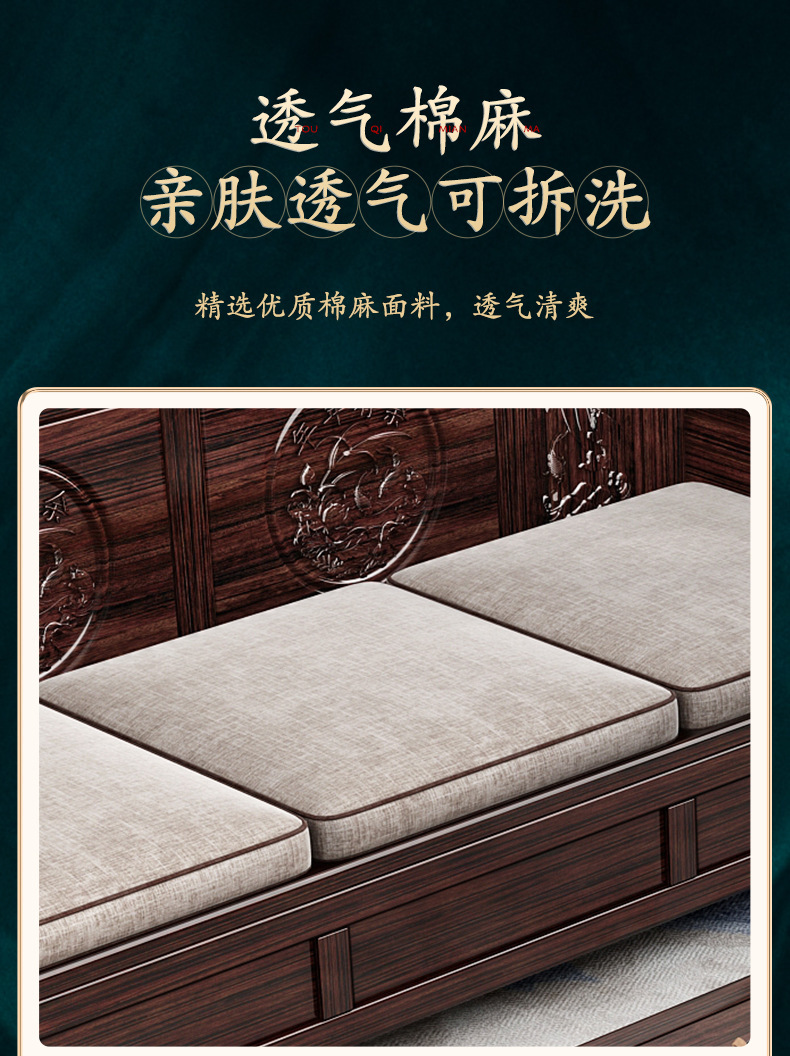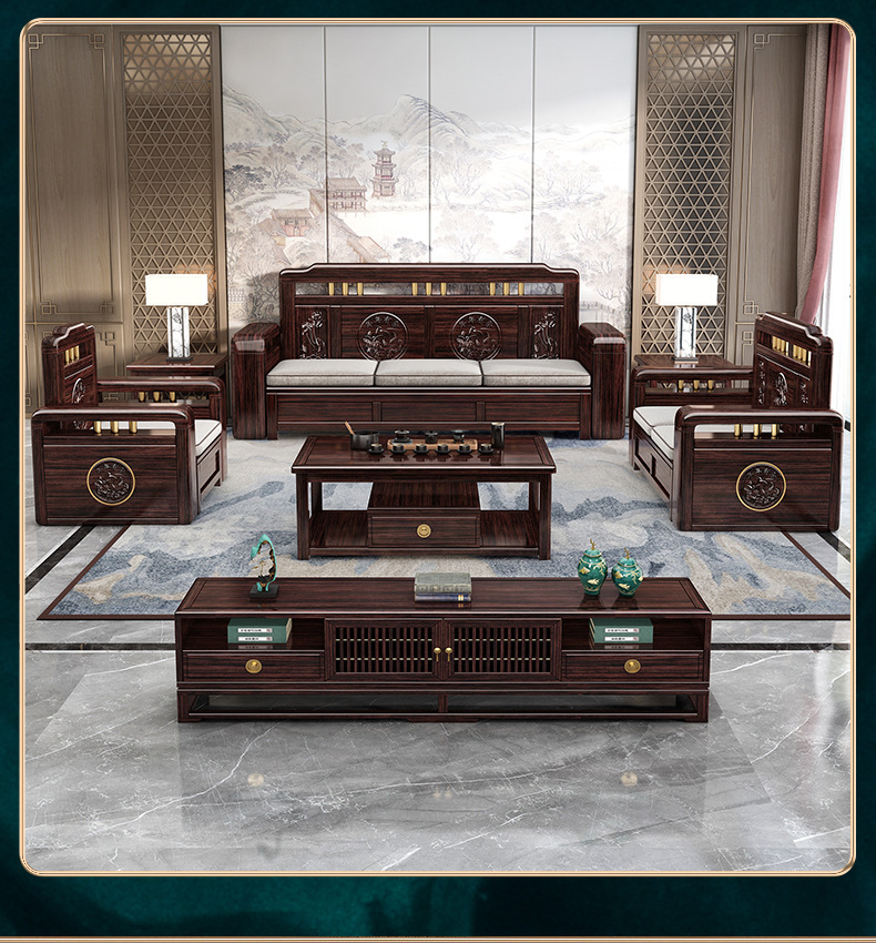 Ghế sofa gỗ nguyên khối bằng gỗ đàn hương màu vàng tím mùa đông và mùa hè sử dụng kép mới theo phong cách Trung Quốc mới phòng khách ghế dài lưu trữ góc sofa nội thất kết hợp