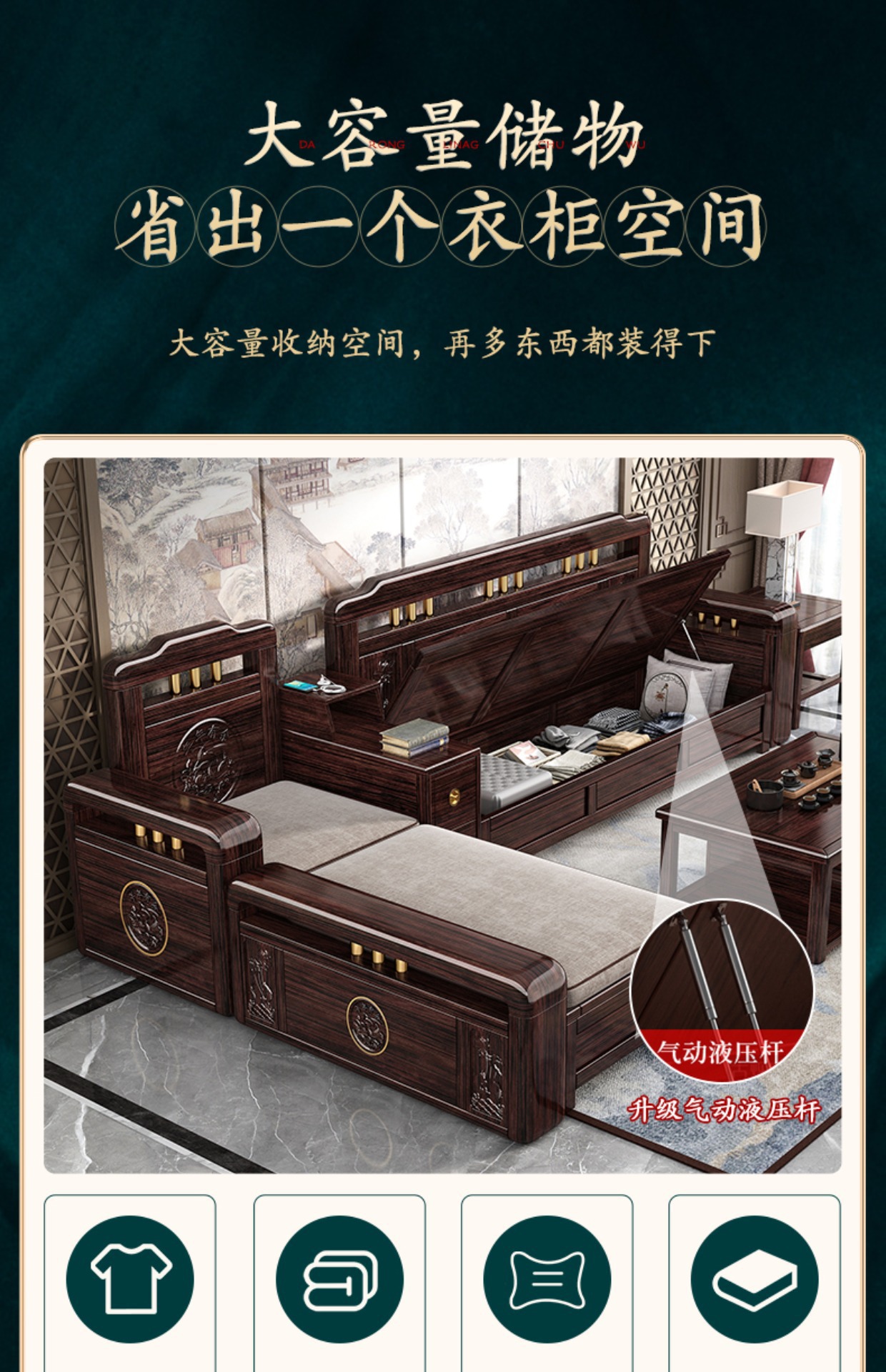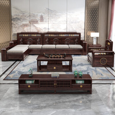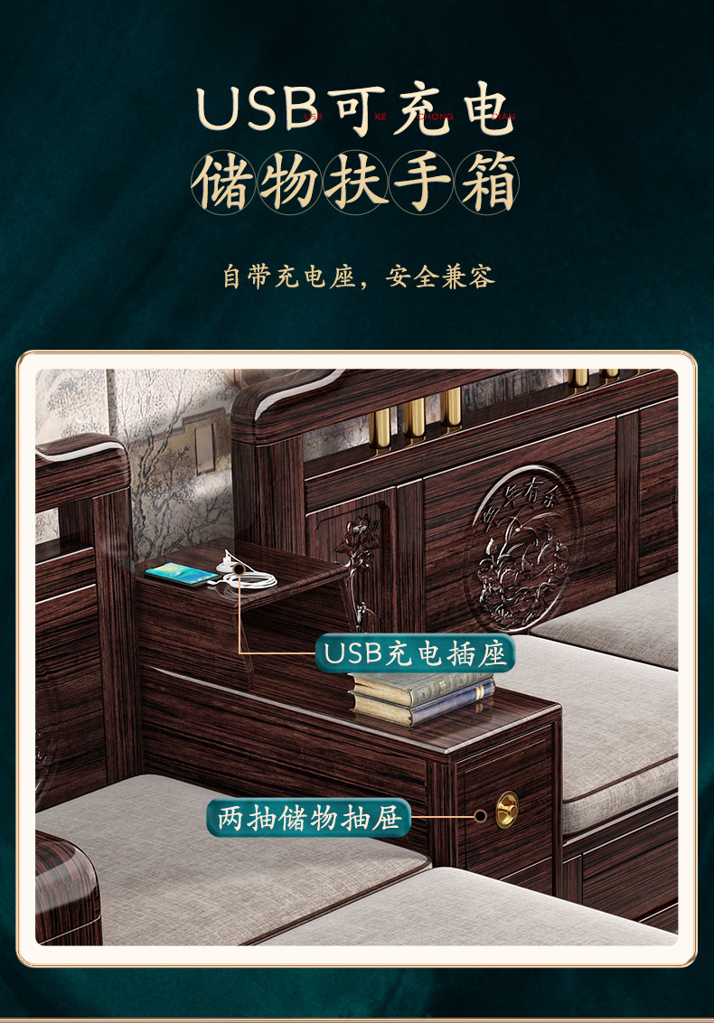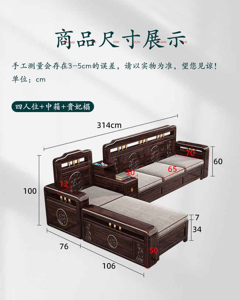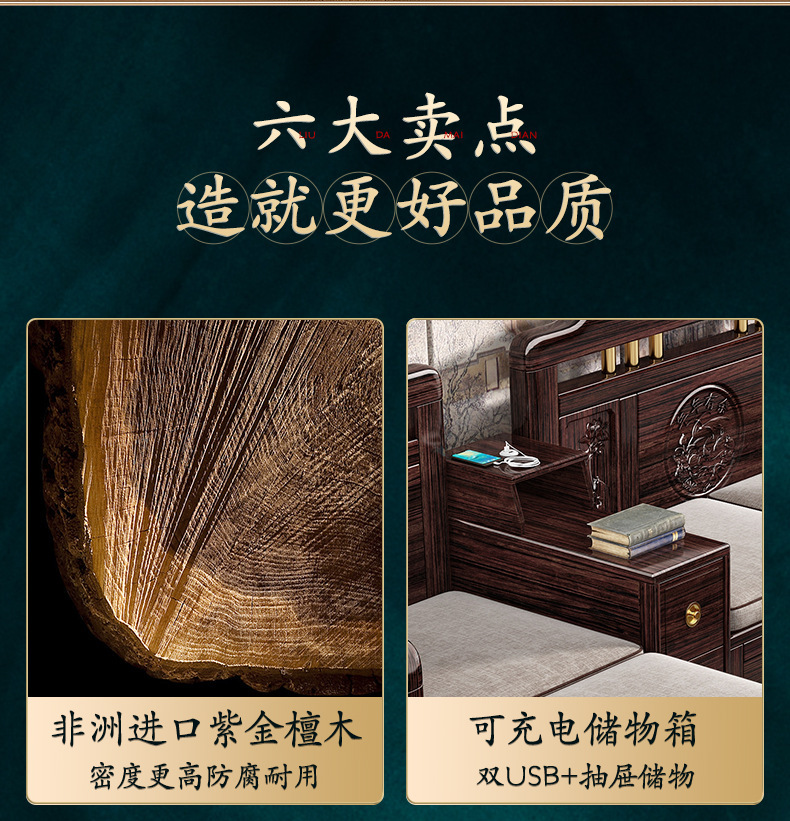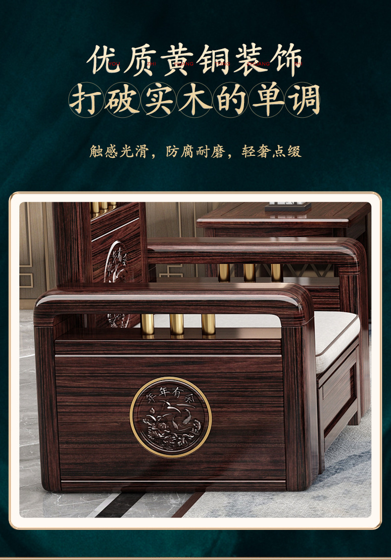 Ghế sofa gỗ nguyên khối bằng gỗ đàn hương màu vàng tím mùa đông và mùa hè sử dụng kép mới theo phong cách Trung Quốc mới phòng khách ghế dài lưu trữ góc sofa nội thất kết hợp